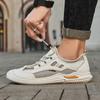 Etiquetas: Tenis para Hombre, Zapatos Deportivos Casuales, Zapatos para Caminar Transpirables, Tenis de Malla y Cuero, Entrenadores Cómodos, Tenis Grises, Tenis Negros, Tenis Beige, Moda Urbana, Zapatos Deportivos Casuales