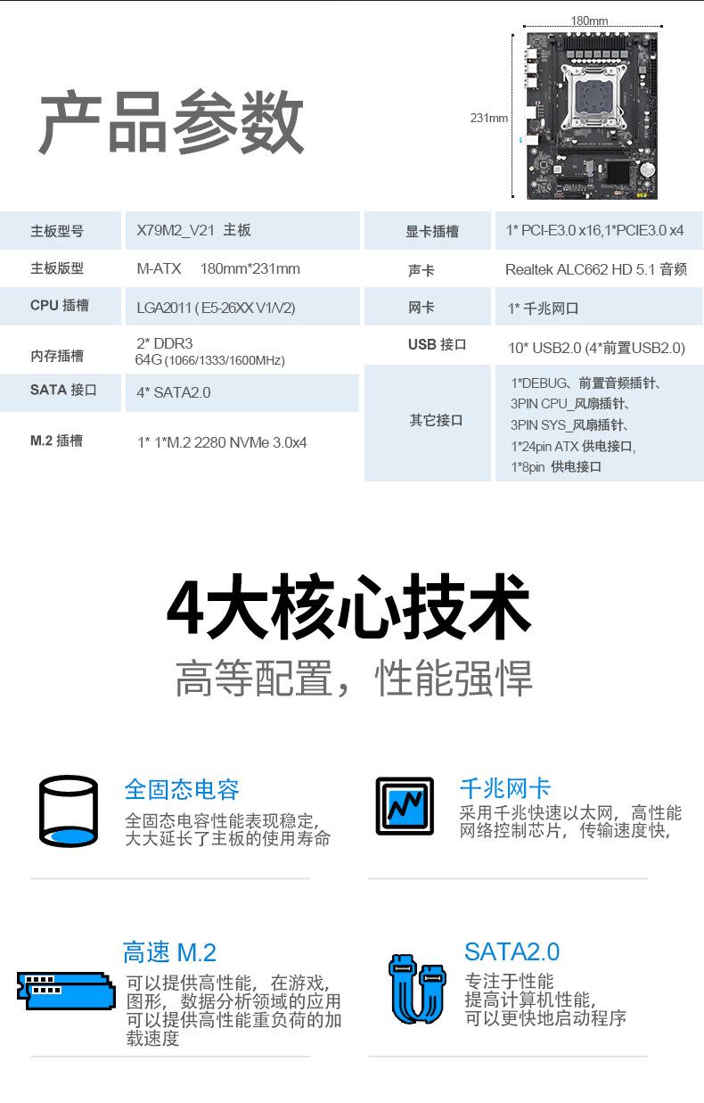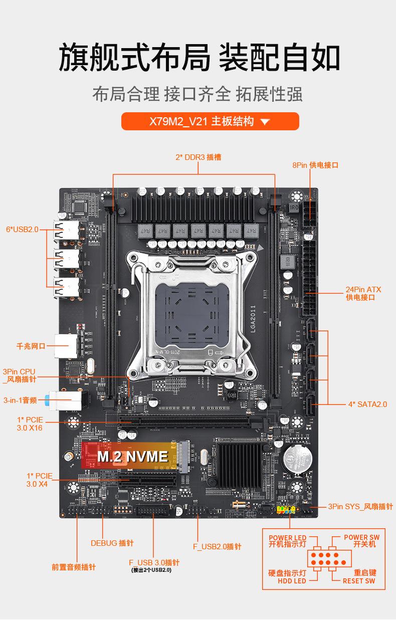 X79M2_V21 Placas de Escritorio para Computadora Socket LGA-2011 Soporte para Procesadores Pines Memoria DDR3 M.2