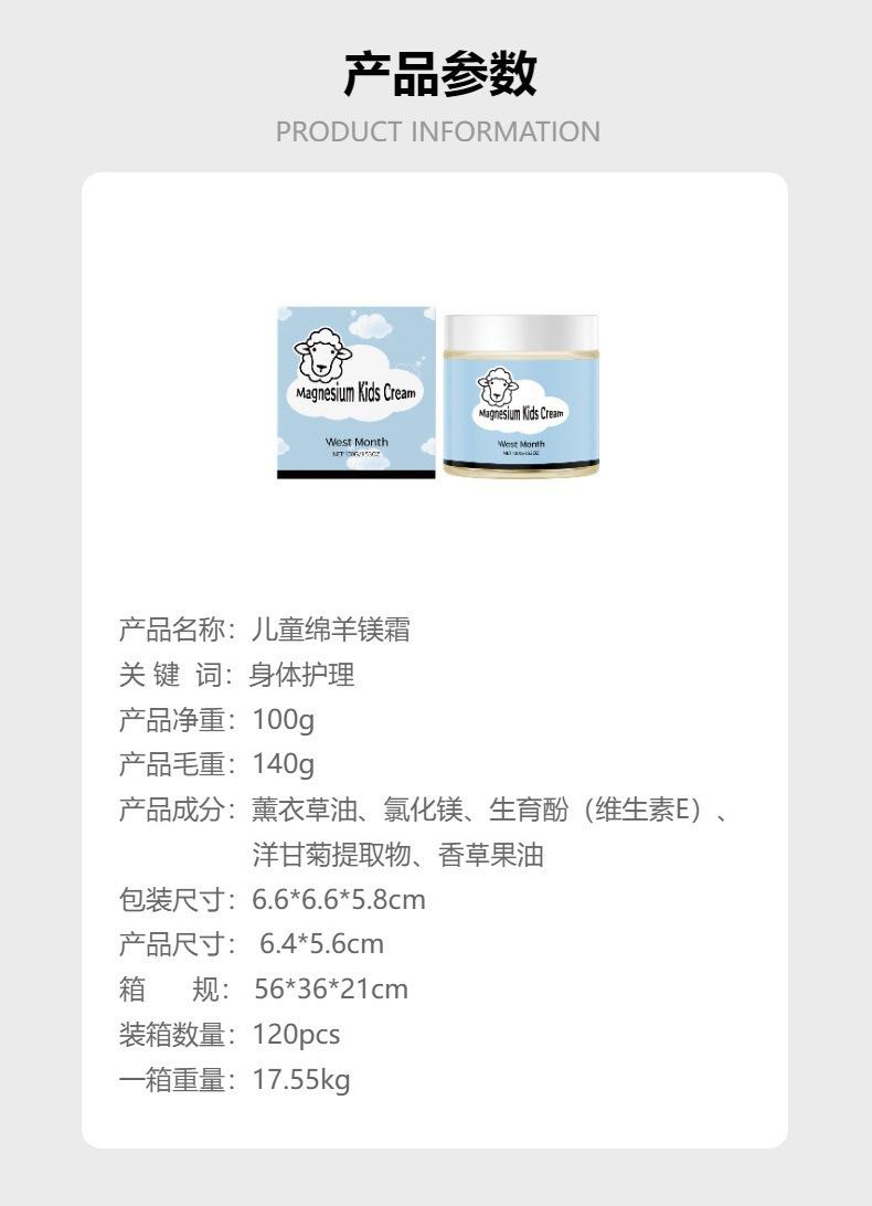 Loción para antes de dormir para niños Crema de magnesio de oveja para niños Crema corporal hidratante y refrescante