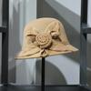 Sombrero cloche de fieltro de lana con rosa de cuatro hojas