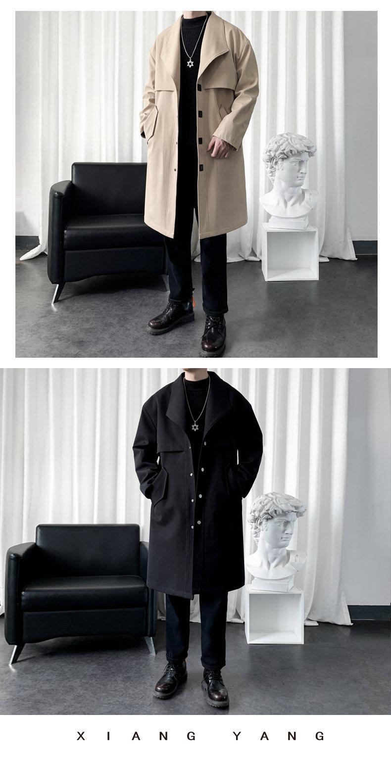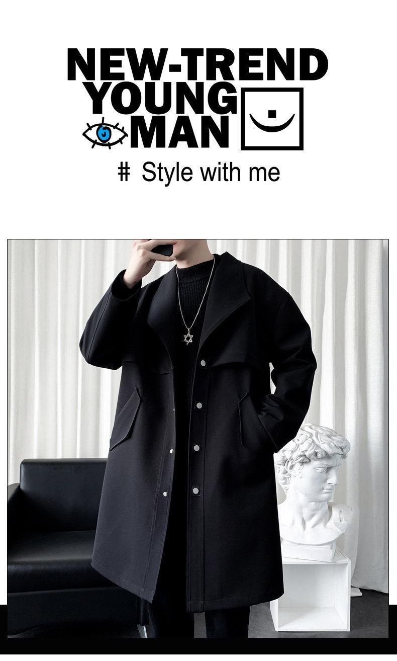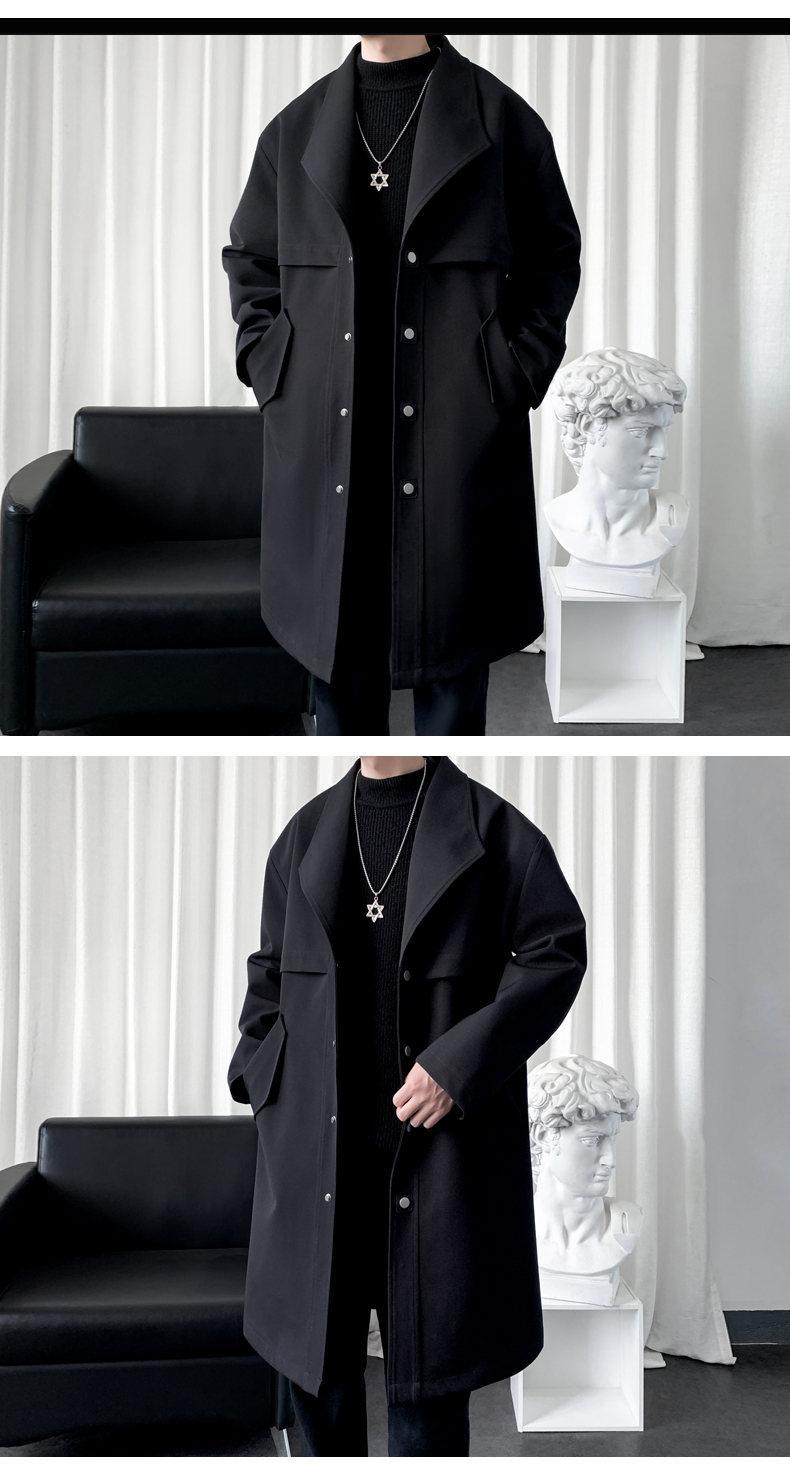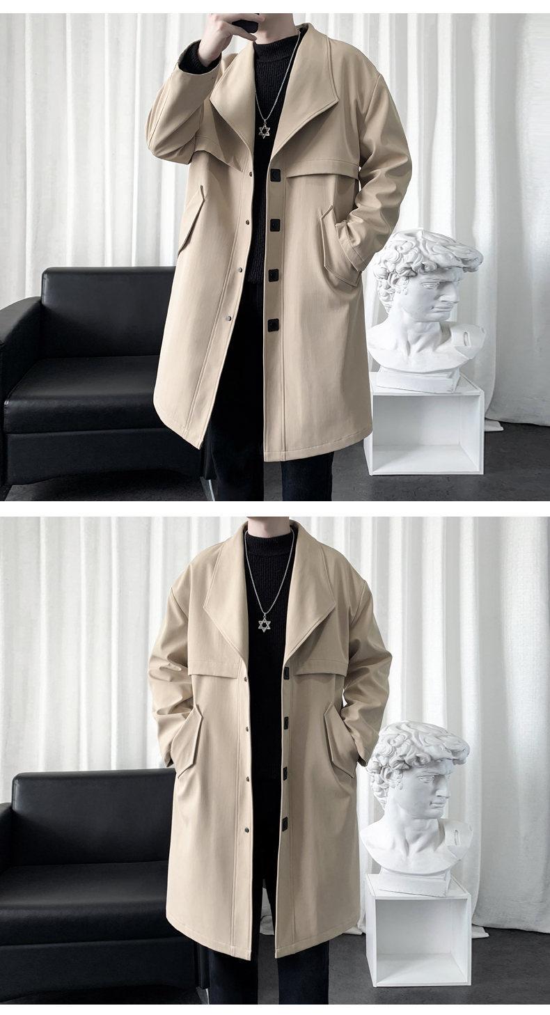 Otoño 2025 Nuevo Abrigo Holgado para Hombre con Cuello Vuelto Estilo Coreano Moda Juvenil Casual Gabardina Chaqueta de Media Longitud para Hombre