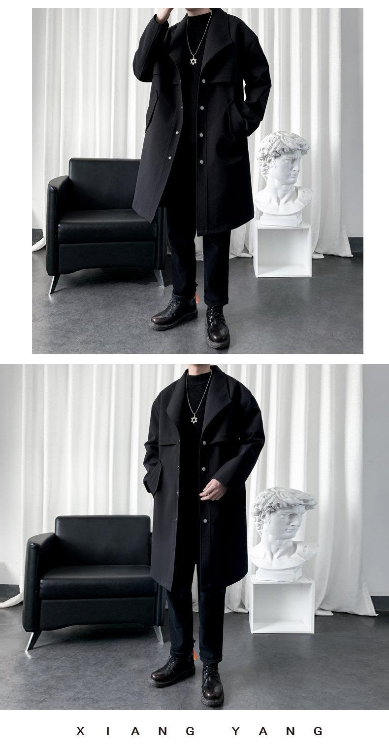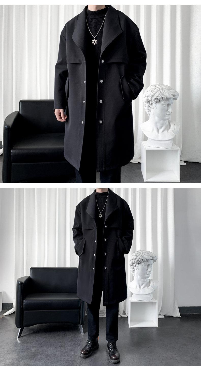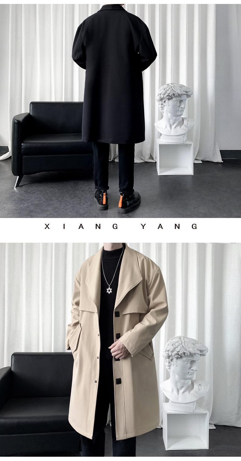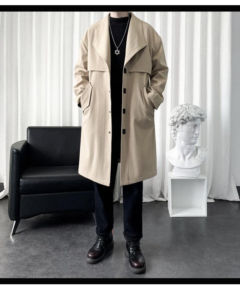 Otoño 2025 Nuevo Abrigo Holgado para Hombre con Cuello Vuelto Estilo Coreano Moda Juvenil Casual Gabardina Chaqueta de Media Longitud para Hombre