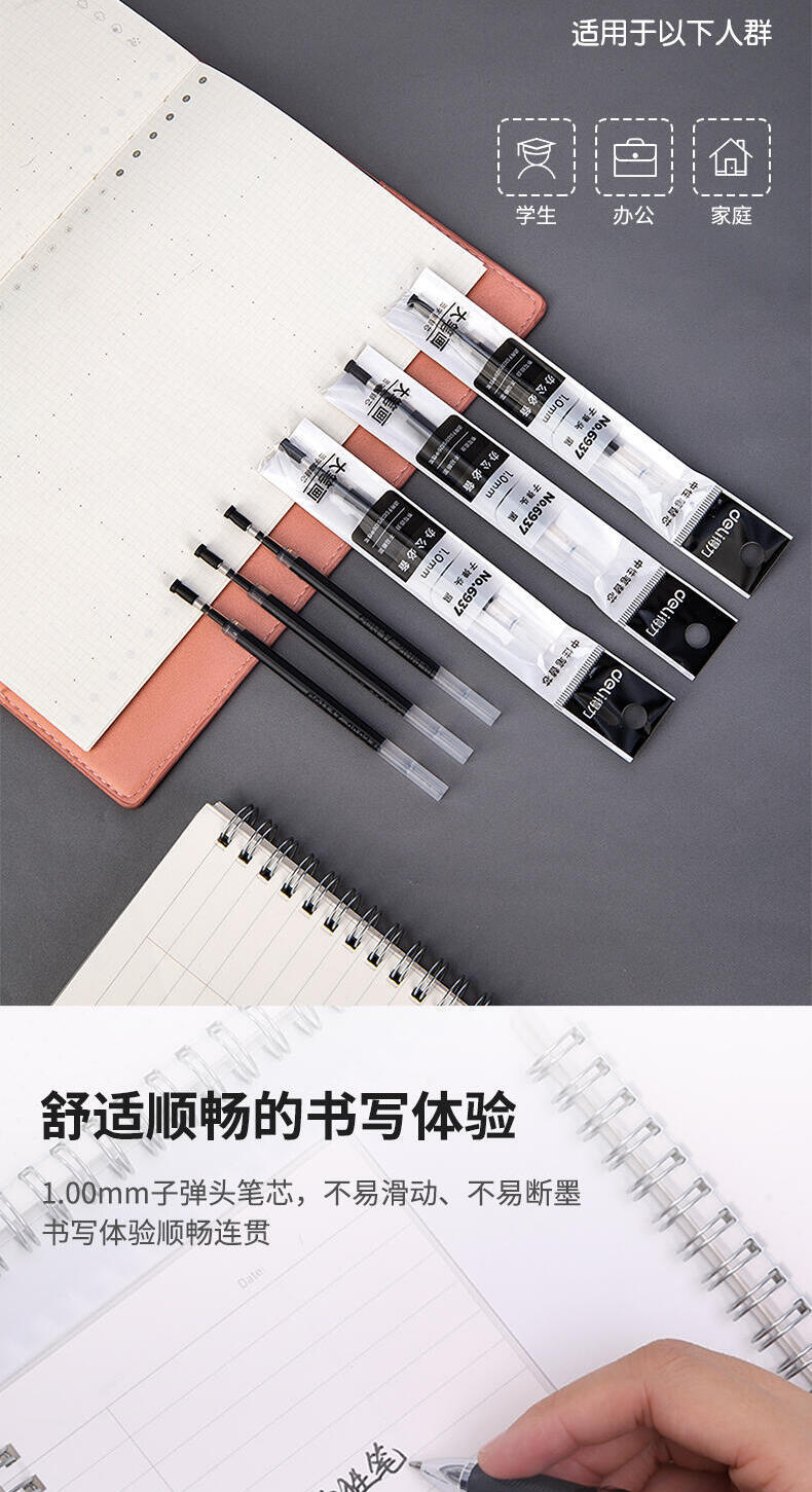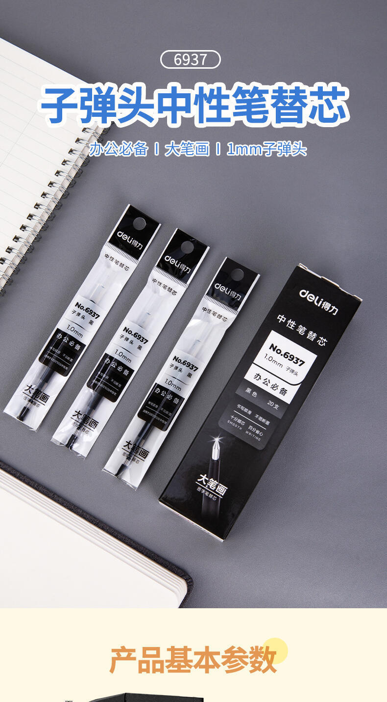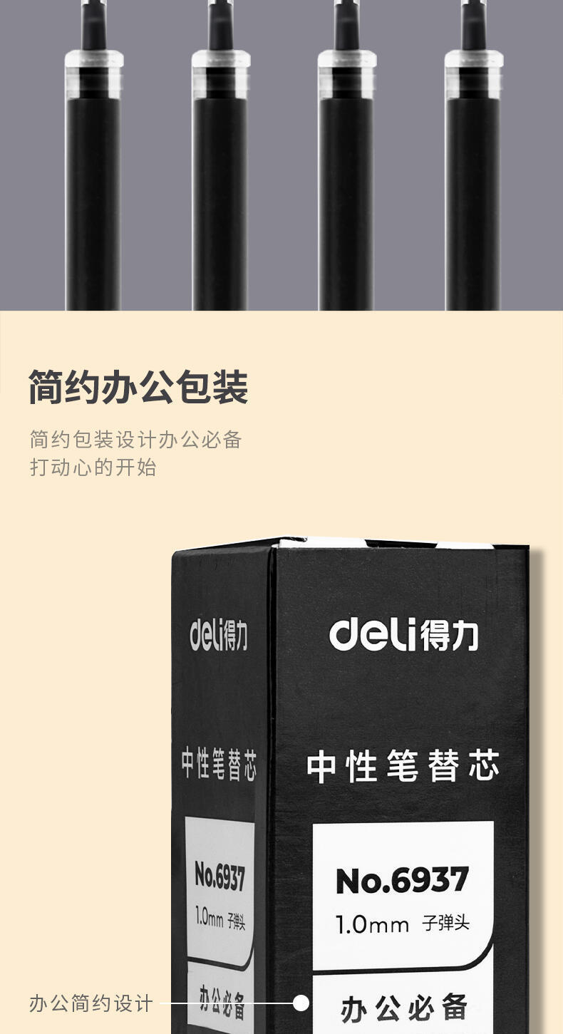Recarga de Pluma Deli Neutral 6937 Recarga de Punta Bala de Presión 1.0mm Trazo Grande Caligrafía Negro Recarga de Pluma para Firma