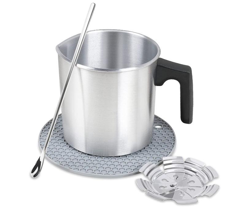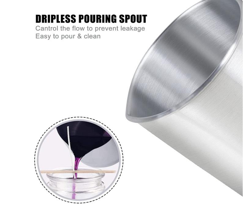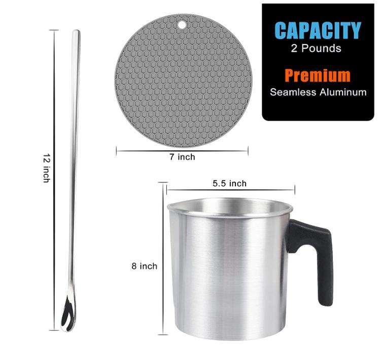Capacidad Perfecta: Puede contener 32oz/900ml de cera fundida, puede satisfacer mejor sus necesidades para hacer velas en lotes pequeños y más manualidades DIY, y puede hacer cacerolas y ollas más pequeñas interesantes y de ajuste perfecto