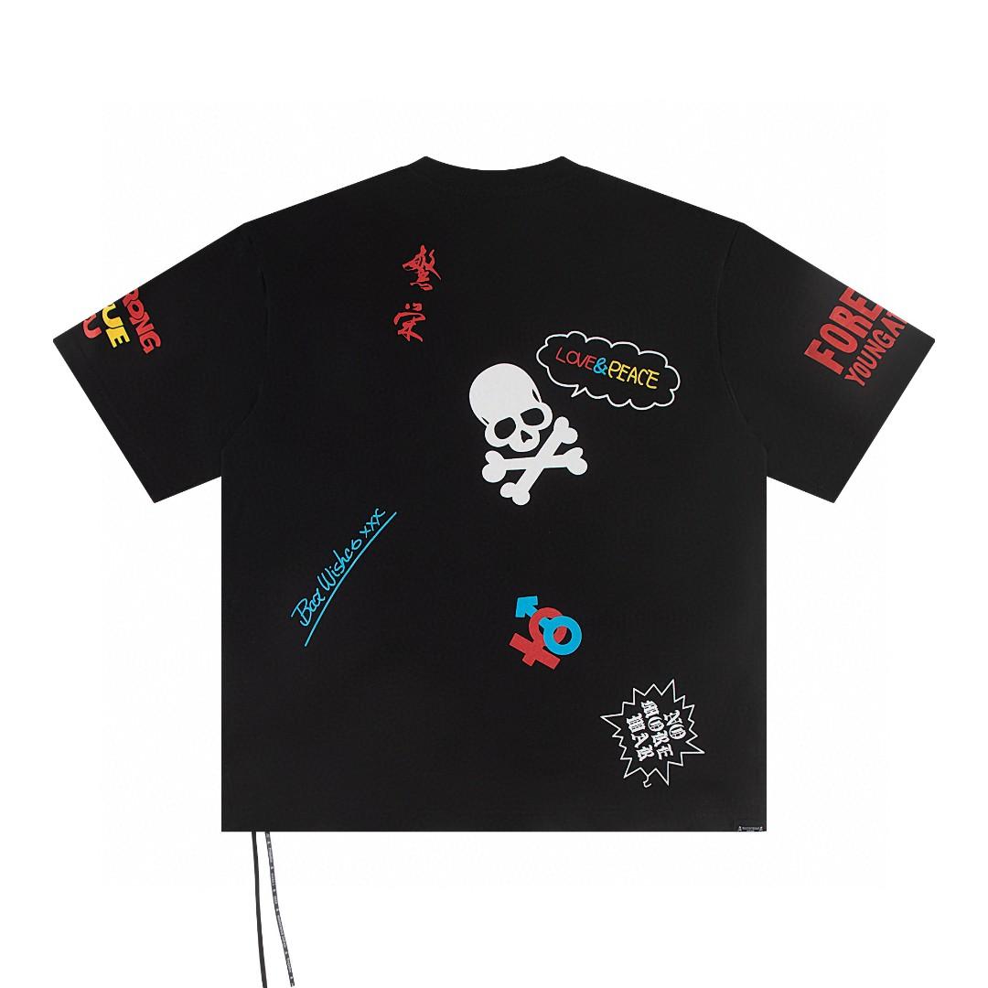 Mastermind Mmj American High Street Camiseta Casual Holgada de Manga Corta con Estampado de Calavera Completo para Hombre y Mujer Verano a la Moda