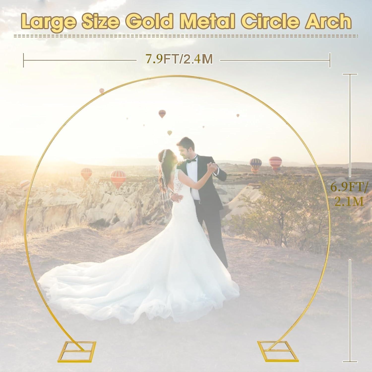 2.4*2.1 m Arco Redondo Dorado de Metal Soporte Fondo Marco de Arco de Globos Boda Cumpleaños Navidad Vestido