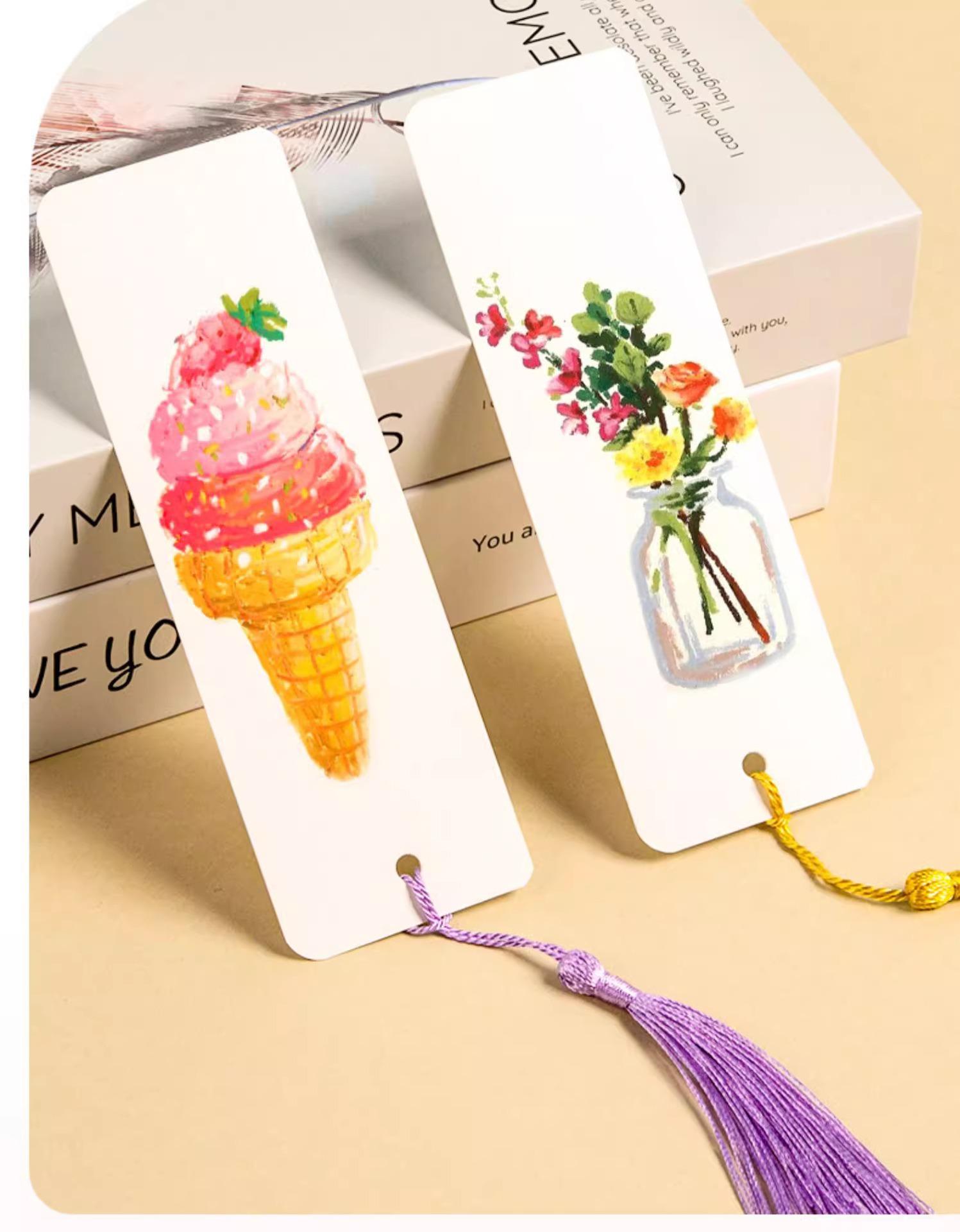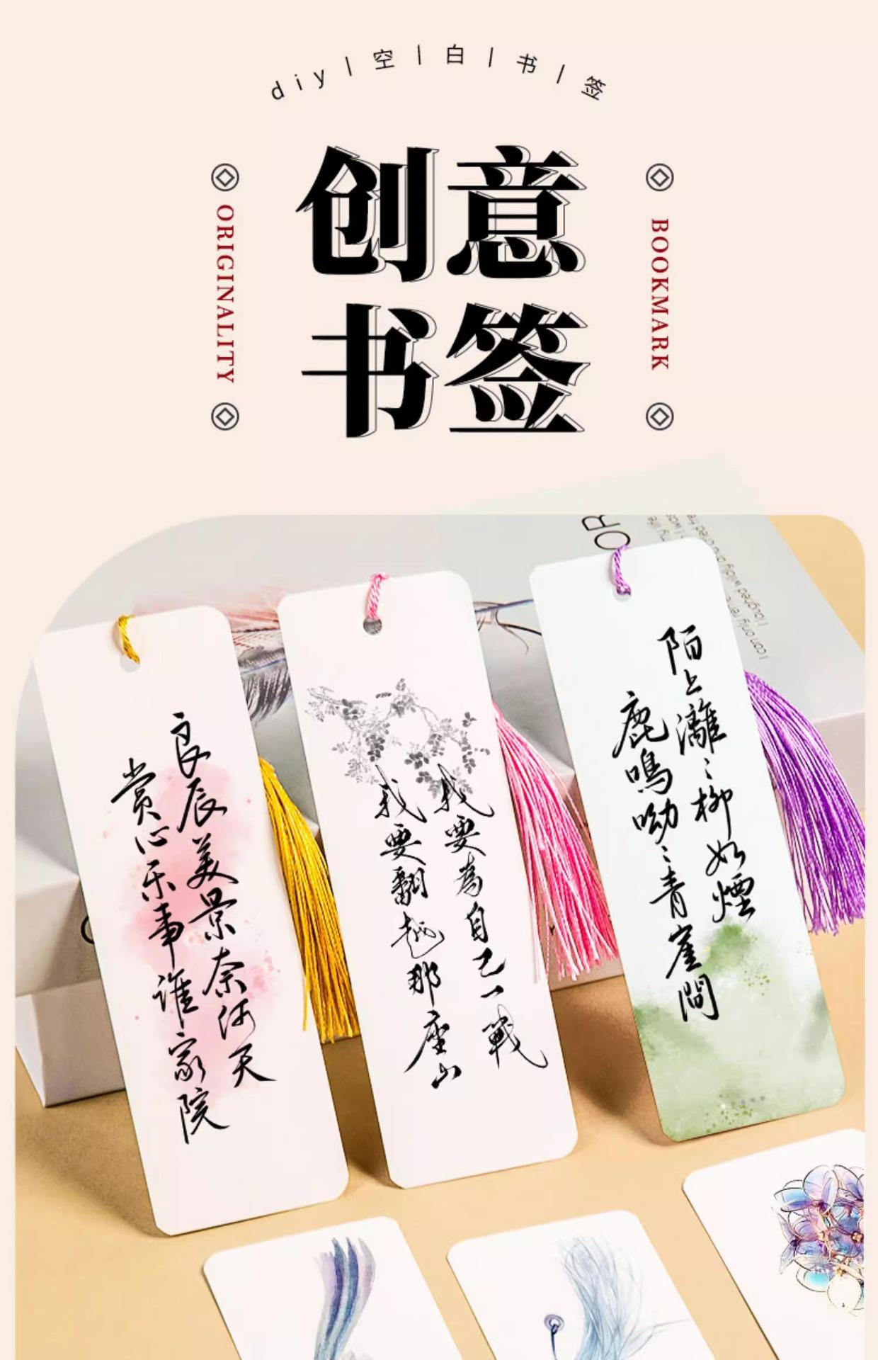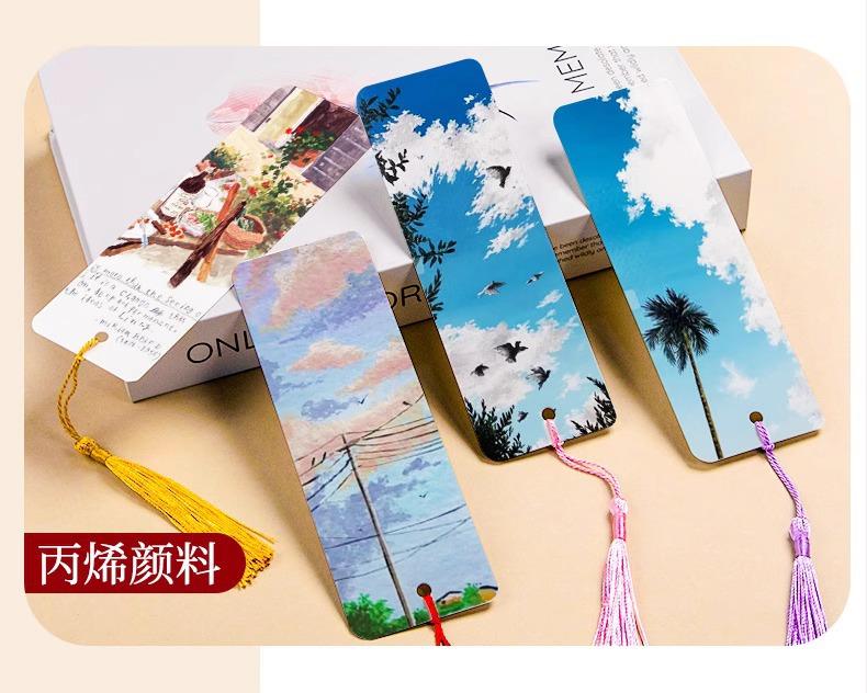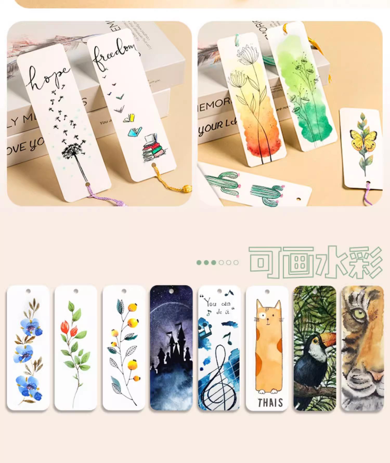 Separador en Blanco Estudiantes de Primaria Hecho a Mano DIY Borla Tarjeta Escrita a Mano Material Pintado a Mano para Niños Separador Casero Tarjeta en Blanco
