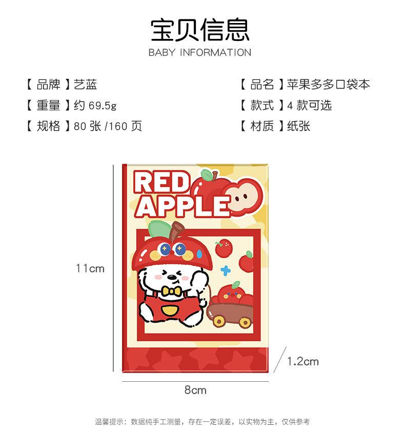 Lindo Cuaderno Apple A7 Estilo Ins Cuaderno de Bolsillo Estudiante Lindo Mini Cuaderno Pequeño Portátil Cuaderno en Blanco