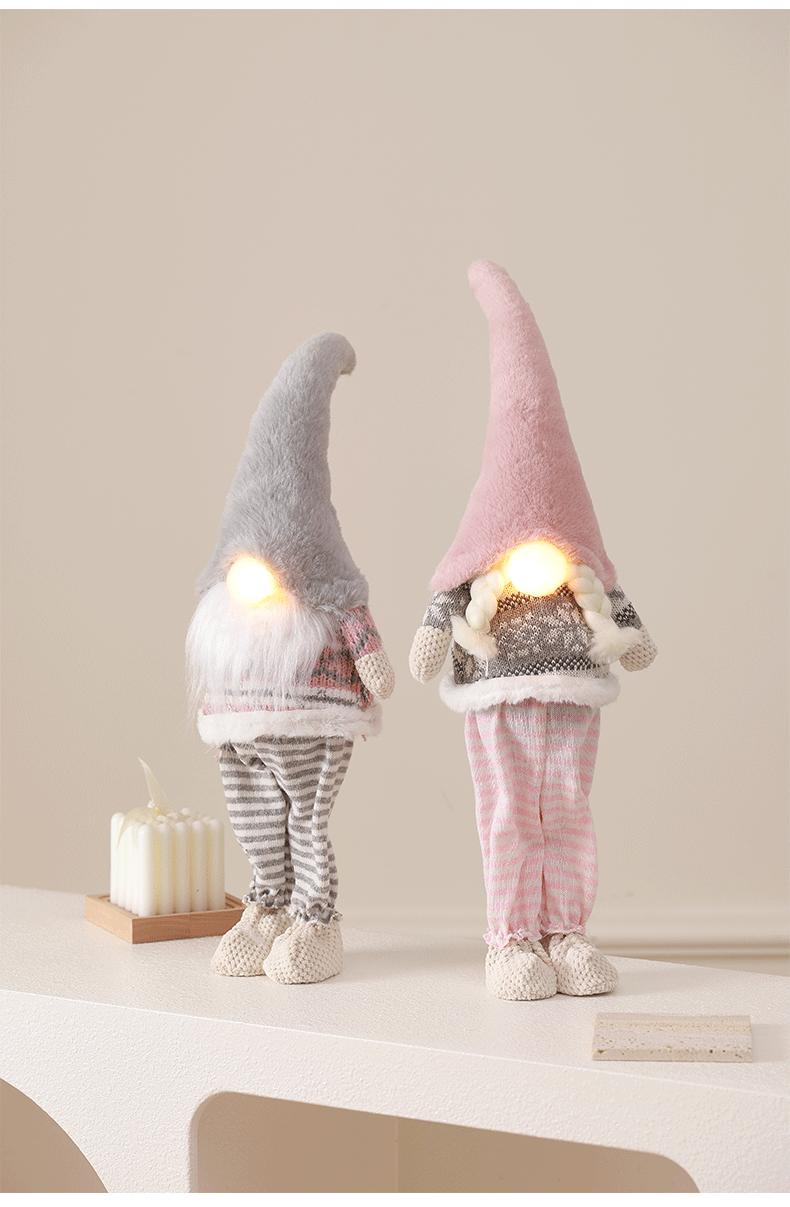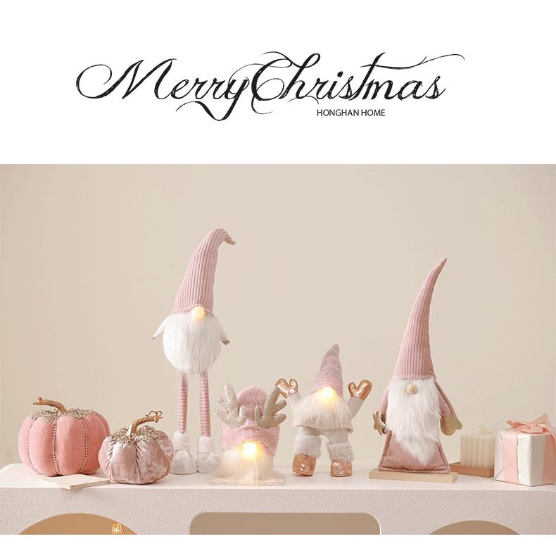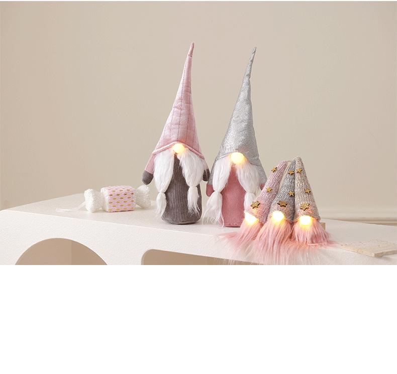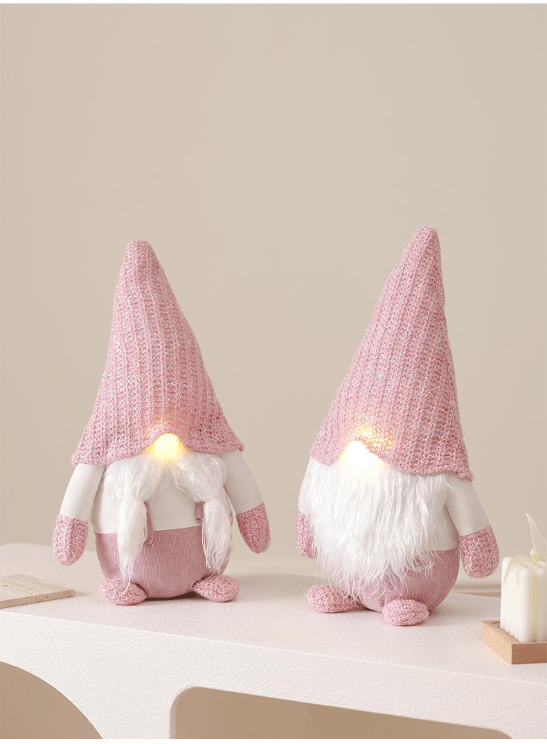 Decoraciones Navideñas Transfronterizas Adornos de Escritorio con Luces Muñecos Navideños Rosados Lindos Sin Rostro Viejo Decoración de Ventana