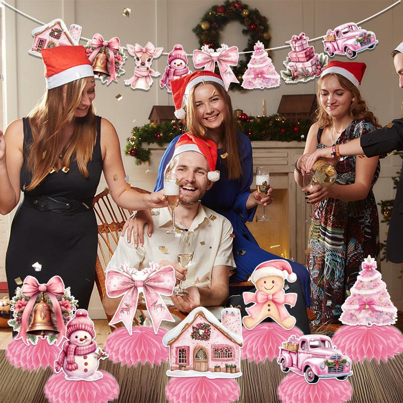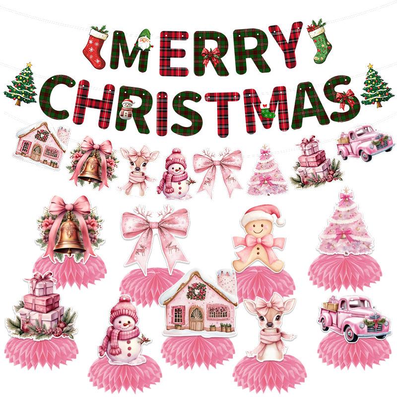 Christmas honeycomb c style, Christmas gift + hat + swallowtail + letter flag combination, Christmas gift flag...