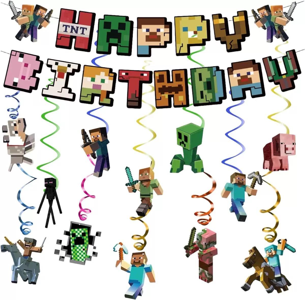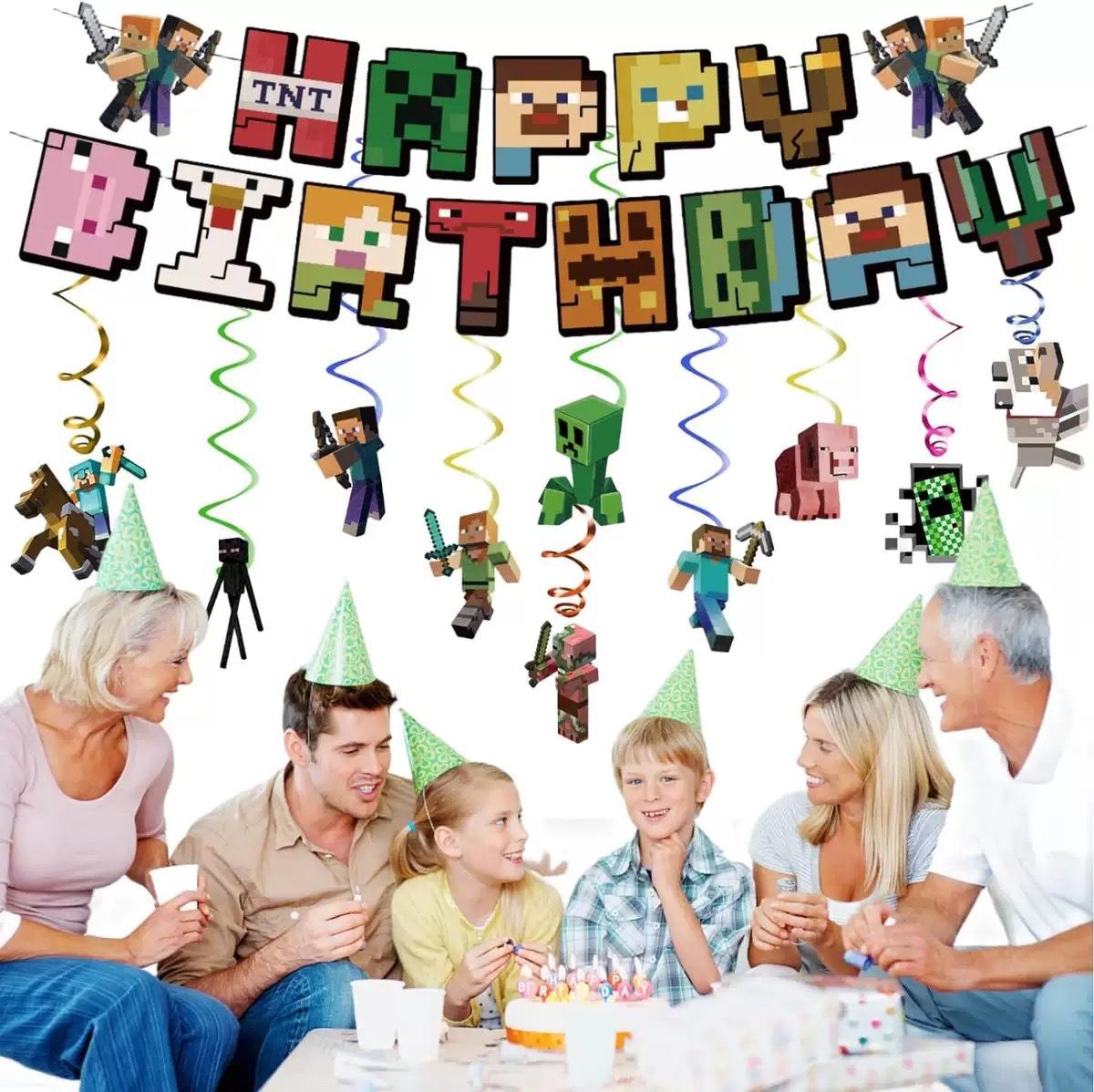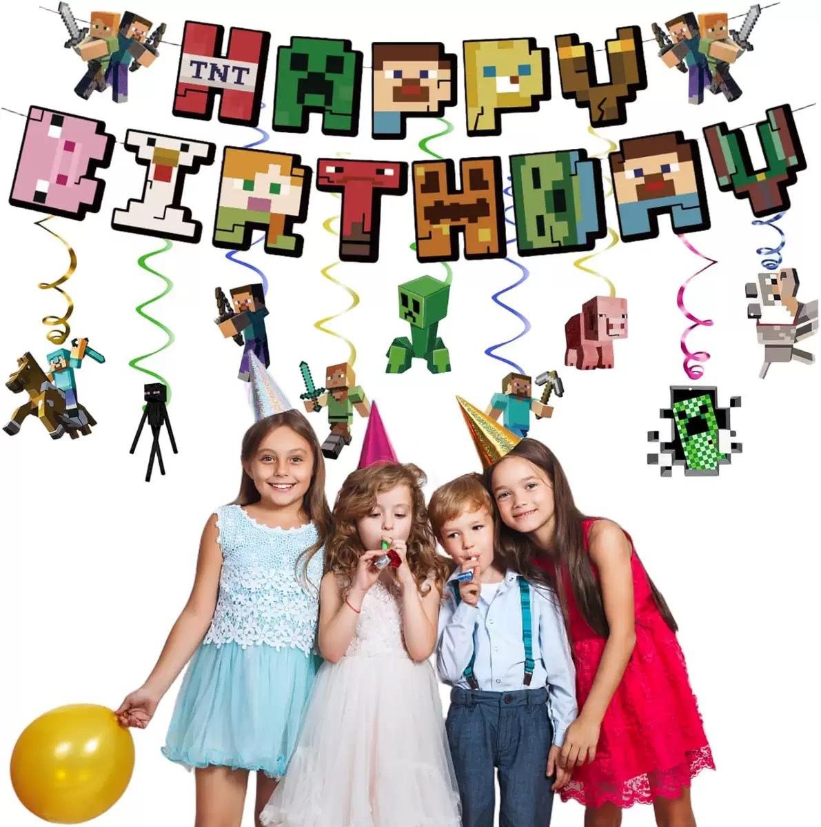 Nueva Decoración para Fiesta Temática Espiral de Minecraft Bandera de Cumpleaños para Niños Set de Globos para Pastel Fábrica de Origen