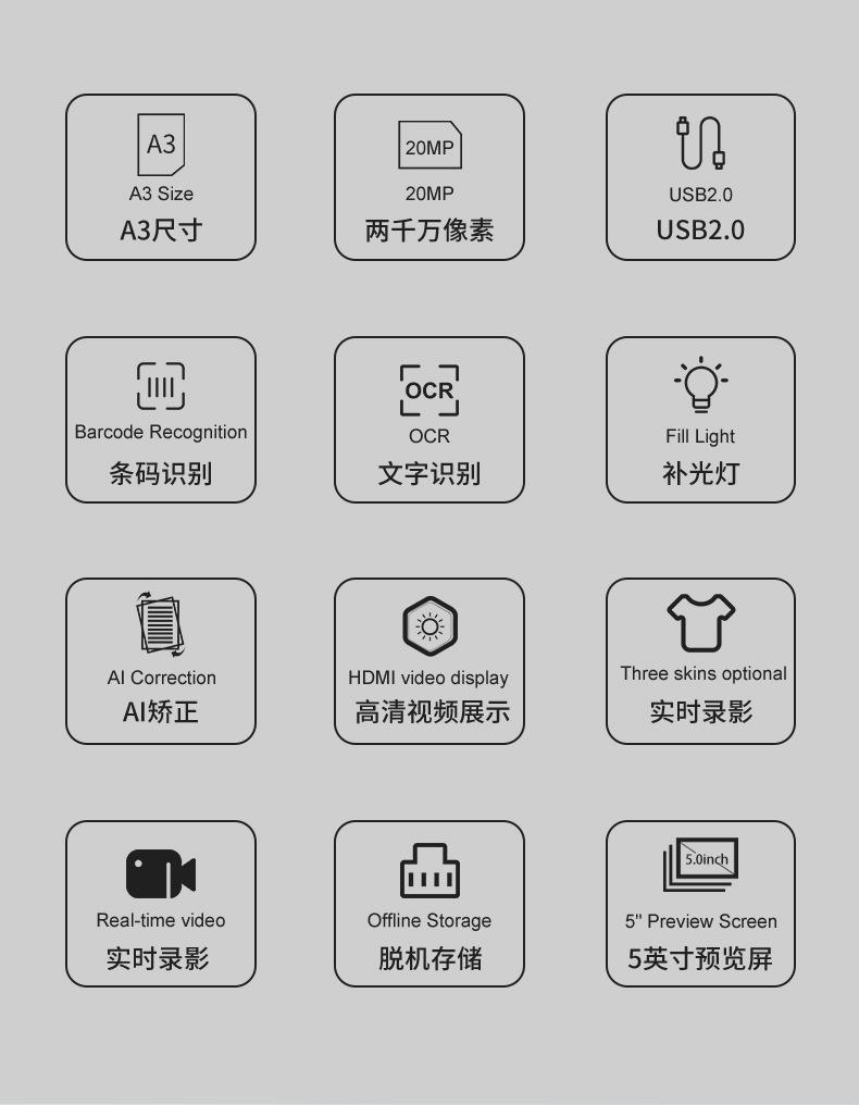 Escáner de Documentos A3 de Alta Velocidad con Pantalla Personalizado de Fábrica 20 Millones de Píxeles Escáner de Libros No Destructivo