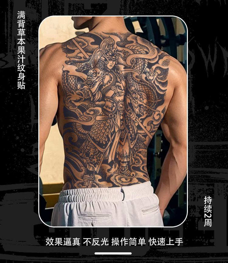 Tatuajes Adhesivos de Jugo Herbal de Espalda Completa Media Espalda Impermeables para Hombre de Larga Duración Artificiales para el Pecho Imagen Grande Flor Tatuaje de Brazo