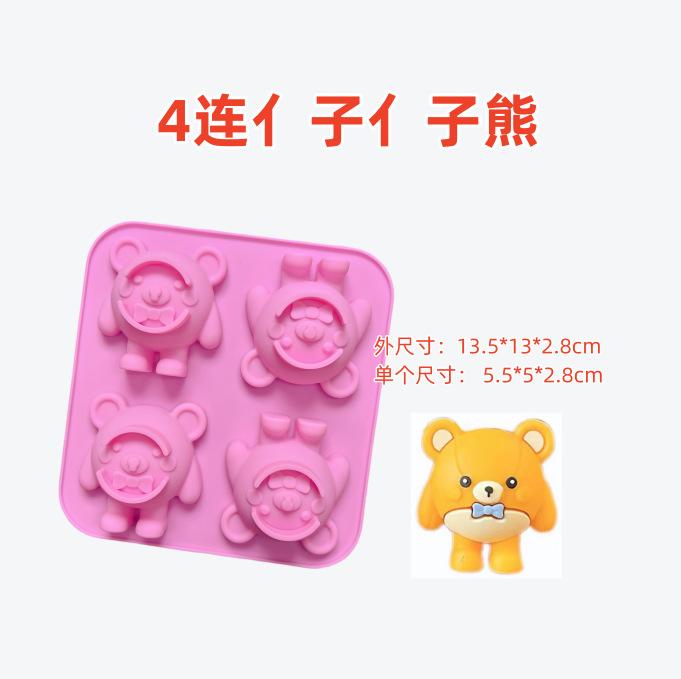 Modelo de muñeca de yeso de oso bebé de 4 piezas, embrión pintado de blanco, bricolaje hecho a mano, pintura, relleno de color, yeso, molde de jabón hecho a mano, caricatura