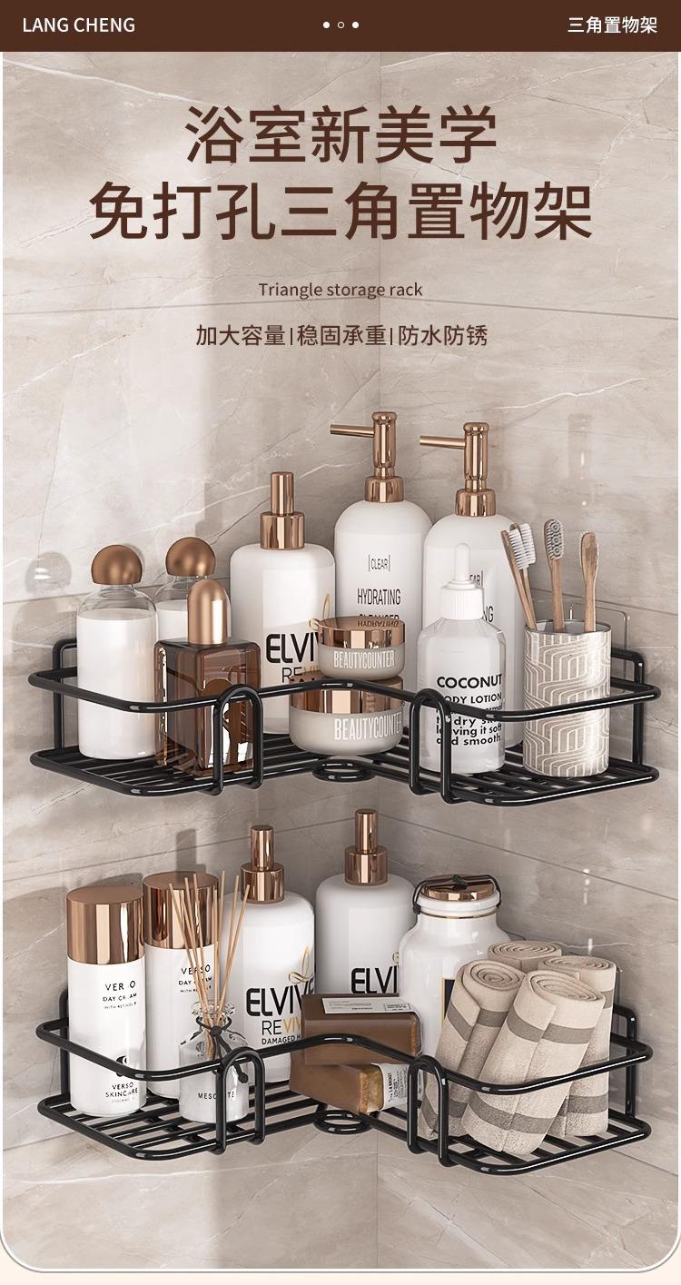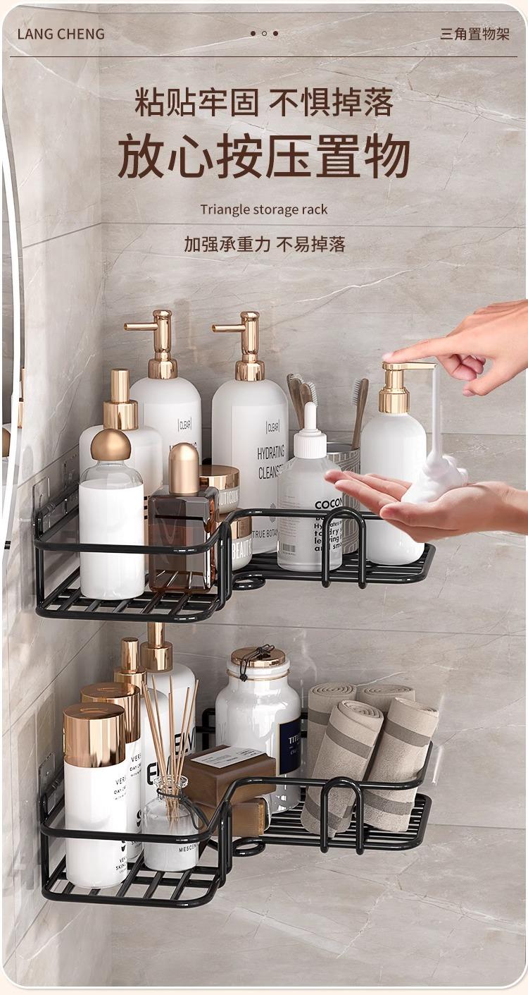 Estante de Almacenamiento para Baño Inodoro Inodoro Montado en la Pared Sin Perforaciones Sin Marcas Multifuncional Hierro Tira Triangular Estante de Almacenamiento