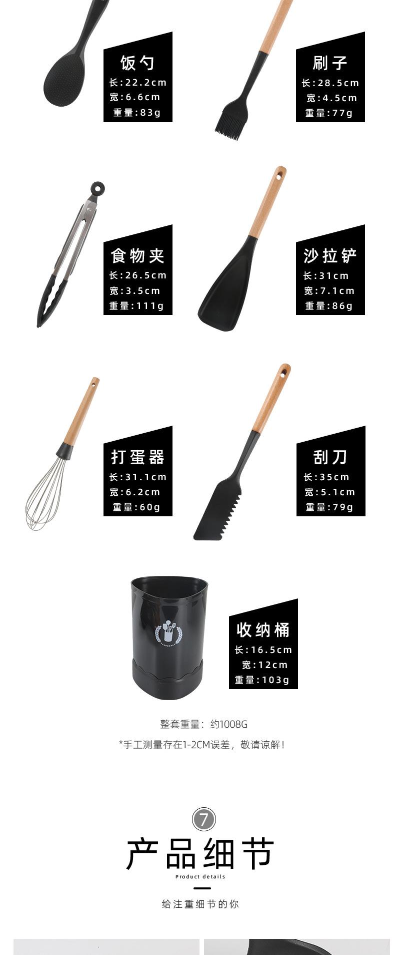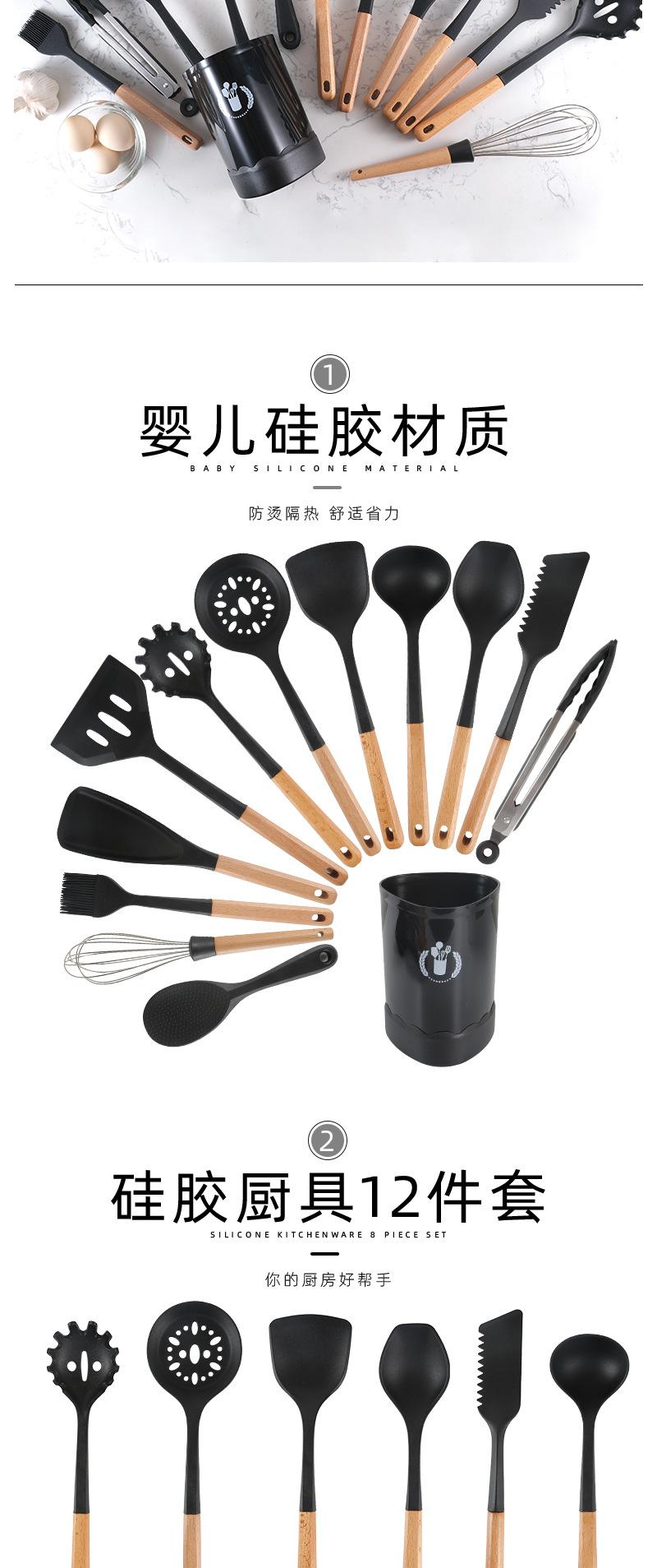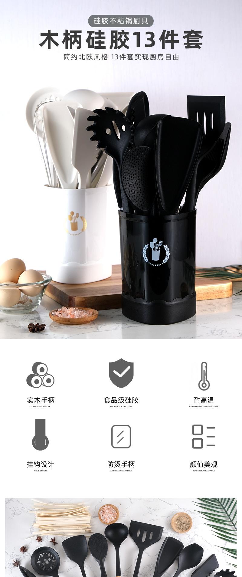 Black 13-piece set, White 13-piece set, Black spoon, Black big spatula, Black 9inch food clip, Black salad spa...