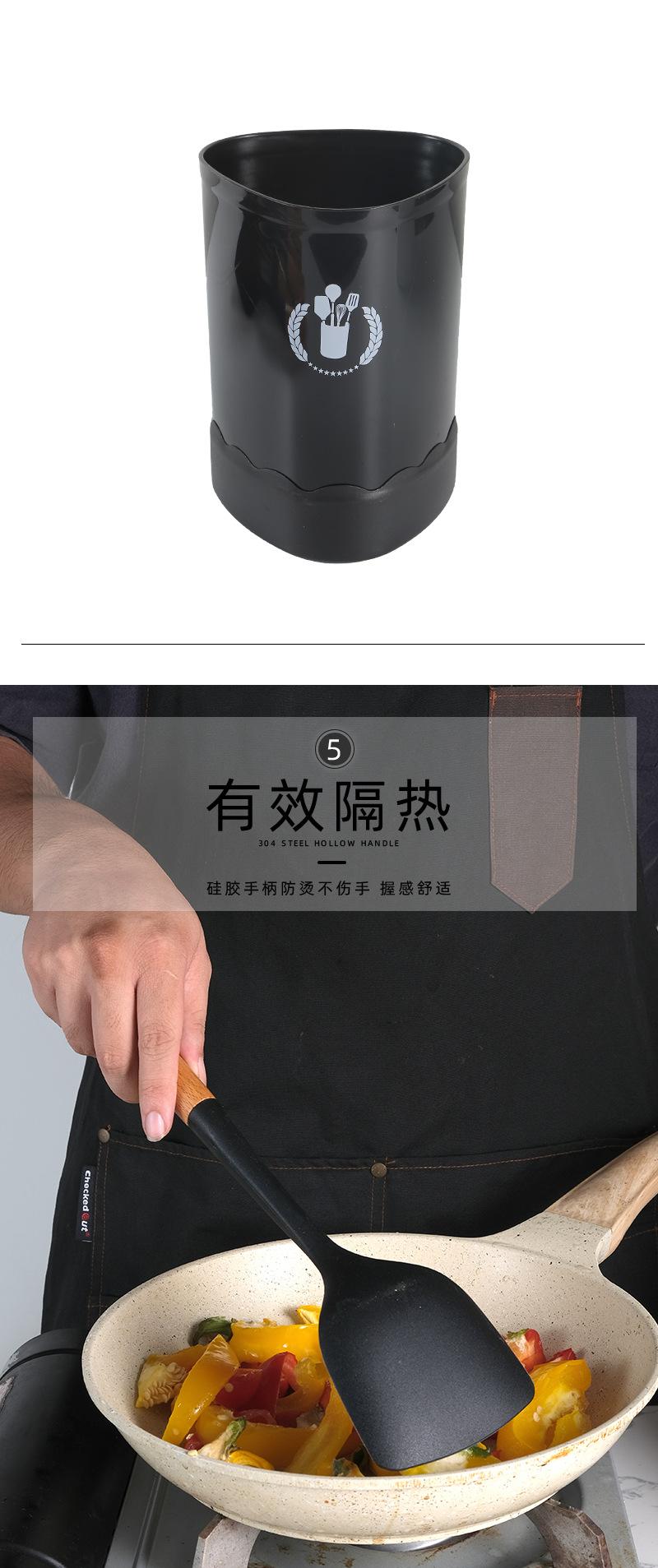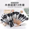 Juego de Utensilios de Cocina de Silicona con Mango de Madera de 13 Piezas Cubo de Almacenamiento Herramientas de Cocina Antiadherentes Cuchara para Cocinar Set de Espátulas