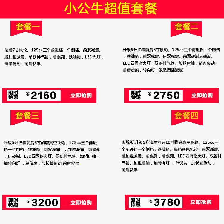 Llanta de refacción de 7 pulgadas 120/cada una Llanta de refacción de 8 pulgadas 160/cada una Llanta de refacción de 10 pulgadas 240/cada una Llanta de refacción de 12 pulgadas 350/cada una Llanta de refacción de 14 pulgadas 450/cada una Cajuela 480/cada una Remolque modificado 380/cada uno Luz de red 25/cada una