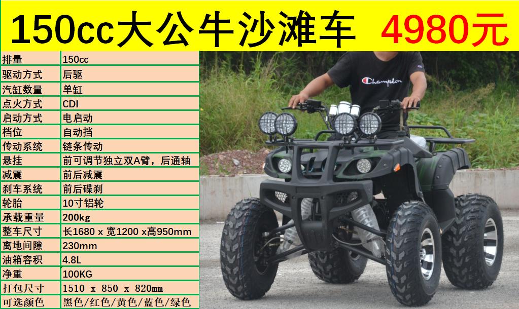 Big Bull Atv 125Cc Vehículo Todoterreno de Cuatro Ruedas Motocicleta Vehículo Todoterreno Gasolina Tracción en las Cuatro Ruedas Bicicleta de Montaña para Adultos