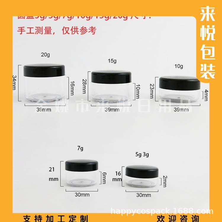 3. Material principal: cuerpo de botella PS + tapa PS; Tamaño: diámetro 30mm, altura 21mm;
