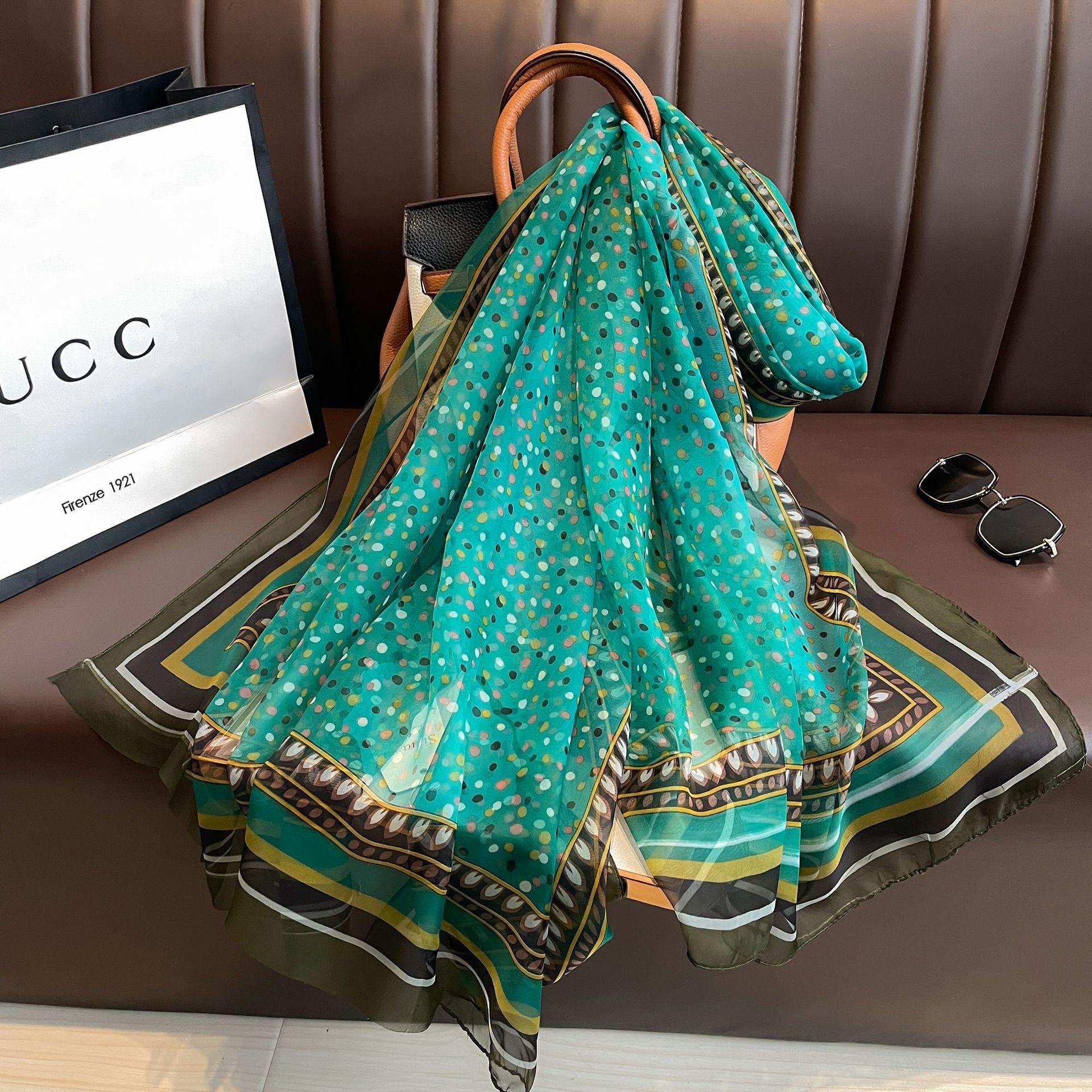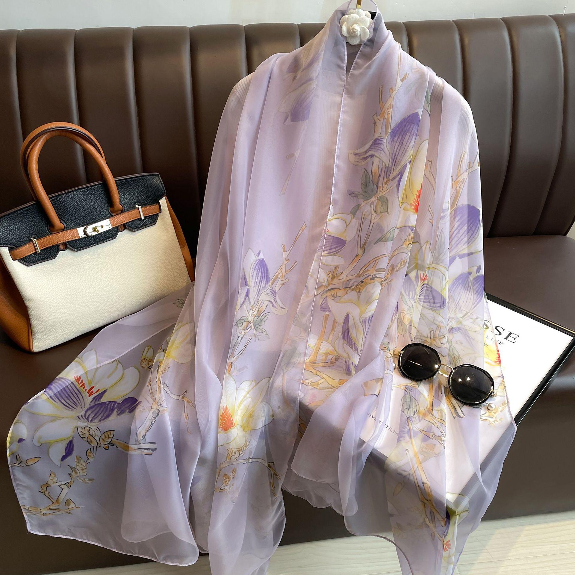 Nuevo chal de hilo yourou de seda estampada para primavera y verano, chal de seda helada, bufanda larga de seda para mujer, bufanda de moda para todo, bufanda protectora solar