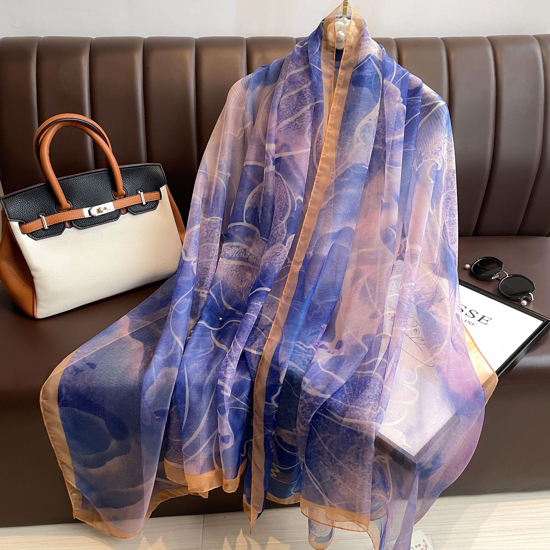 Compra Nuevo chal de hilo yourou de seda estampada para primavera y verano, chal de seda helada, bufanda larga de seda para mujer, bufanda de moda para todo, bufanda protectora solar al por mayor en Joom.pro