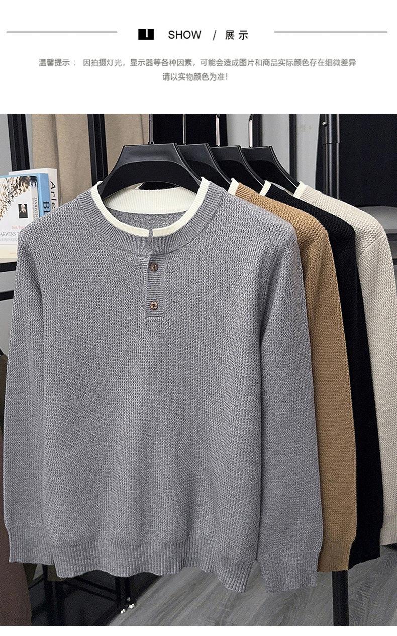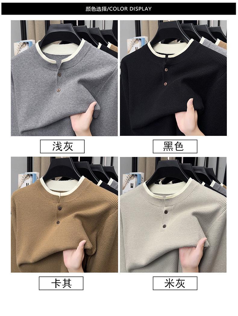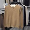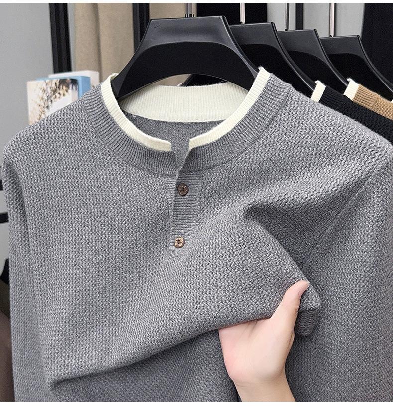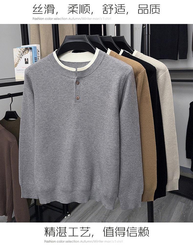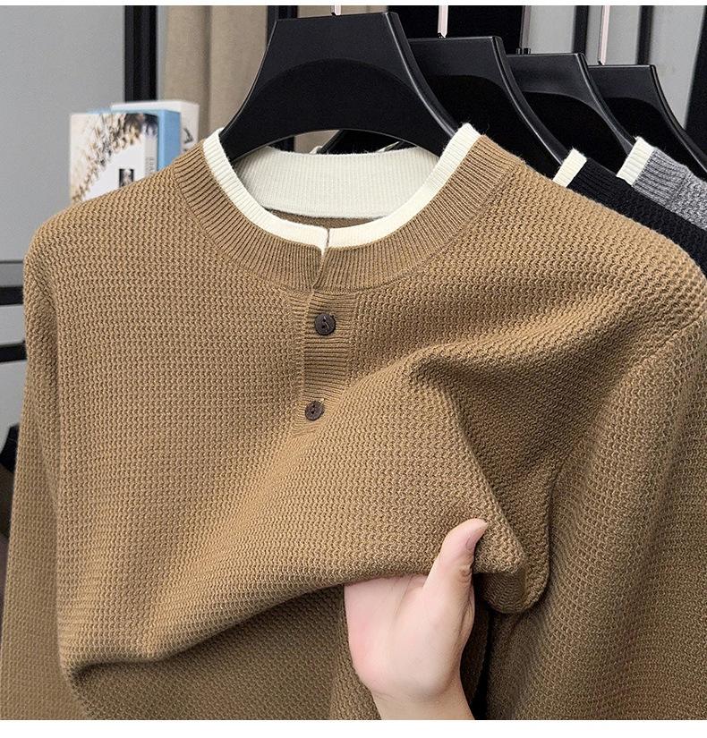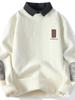 Suéter de cuello redondo de dos piezas falsas para hombre 2025 Otoño e Invierno Nuevo Juventud Suelto Engrosado Capa Interior Cálida Base Camisa Tejida
