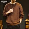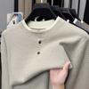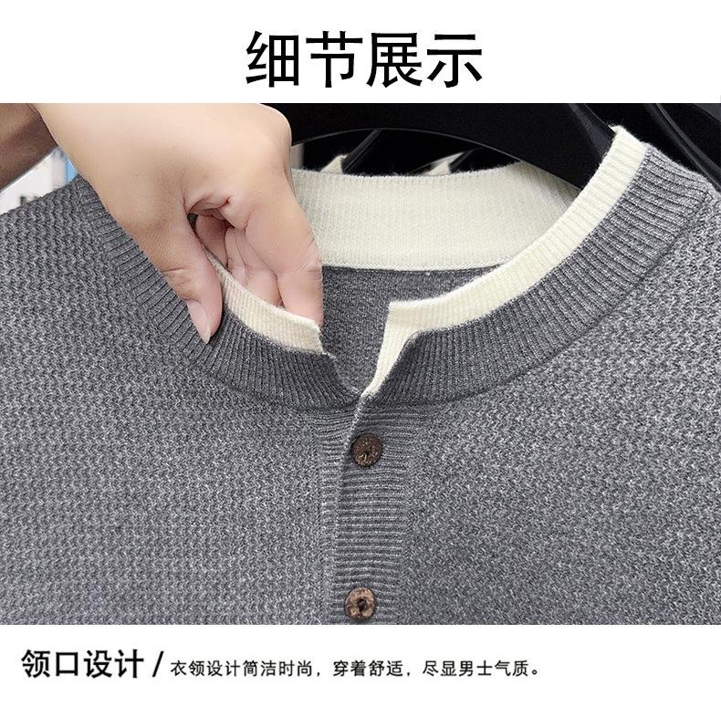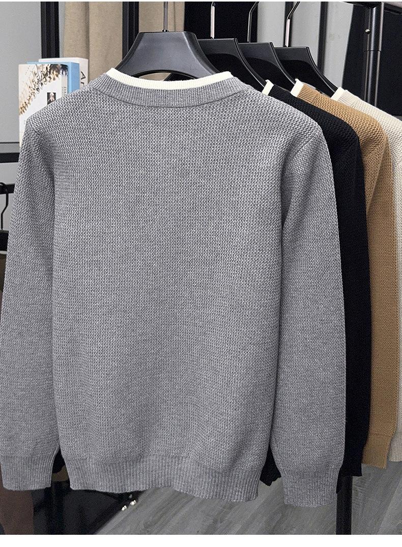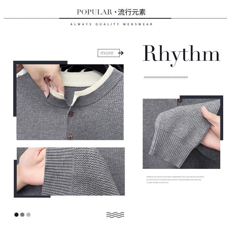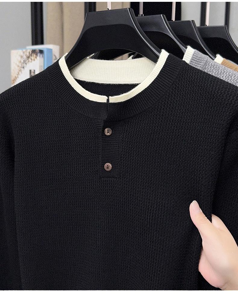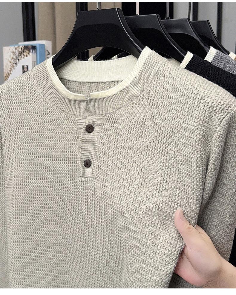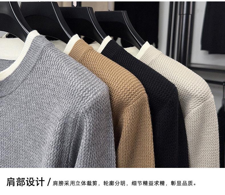 Suéter de cuello redondo de dos piezas falsas para hombre 2025 Otoño e Invierno Nuevo Juventud Suelto Engrosado Capa Interior Cálida Base Camisa Tejida