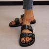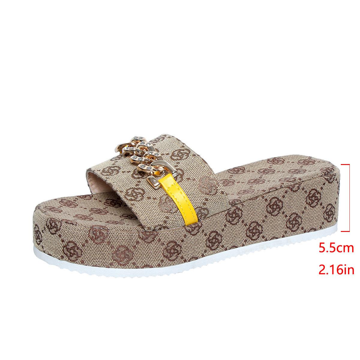 Zapatillas de talla grande transfronterizas de suela gruesa con una tira, bordadas con hebilla metálica, para mujer, para exterior, ligeras, sandalias de playa