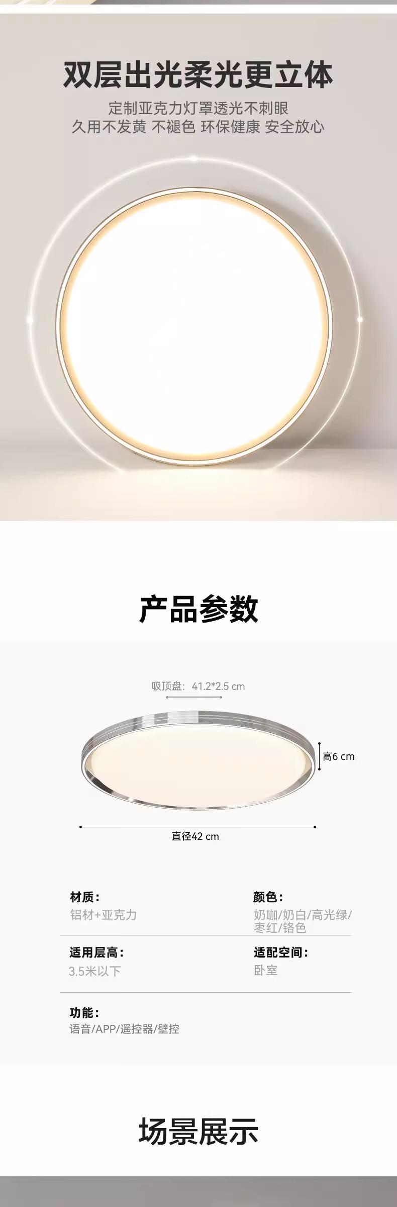 Protección Ocular de Espectro Completo Lámpara de Sala de Estar Lámpara de Techo LED de Dormitorio de Alta Gama Super Brillante Atmosférica Redonda Lámpara de Habitación Zhongshan