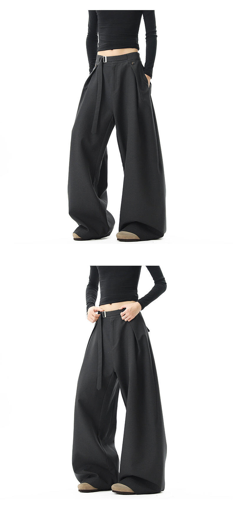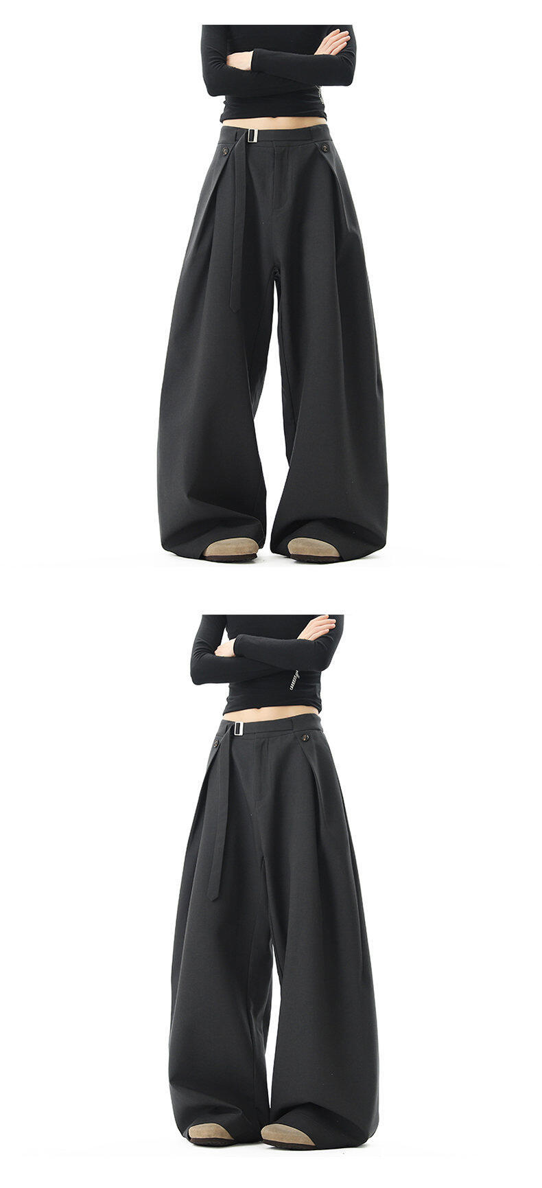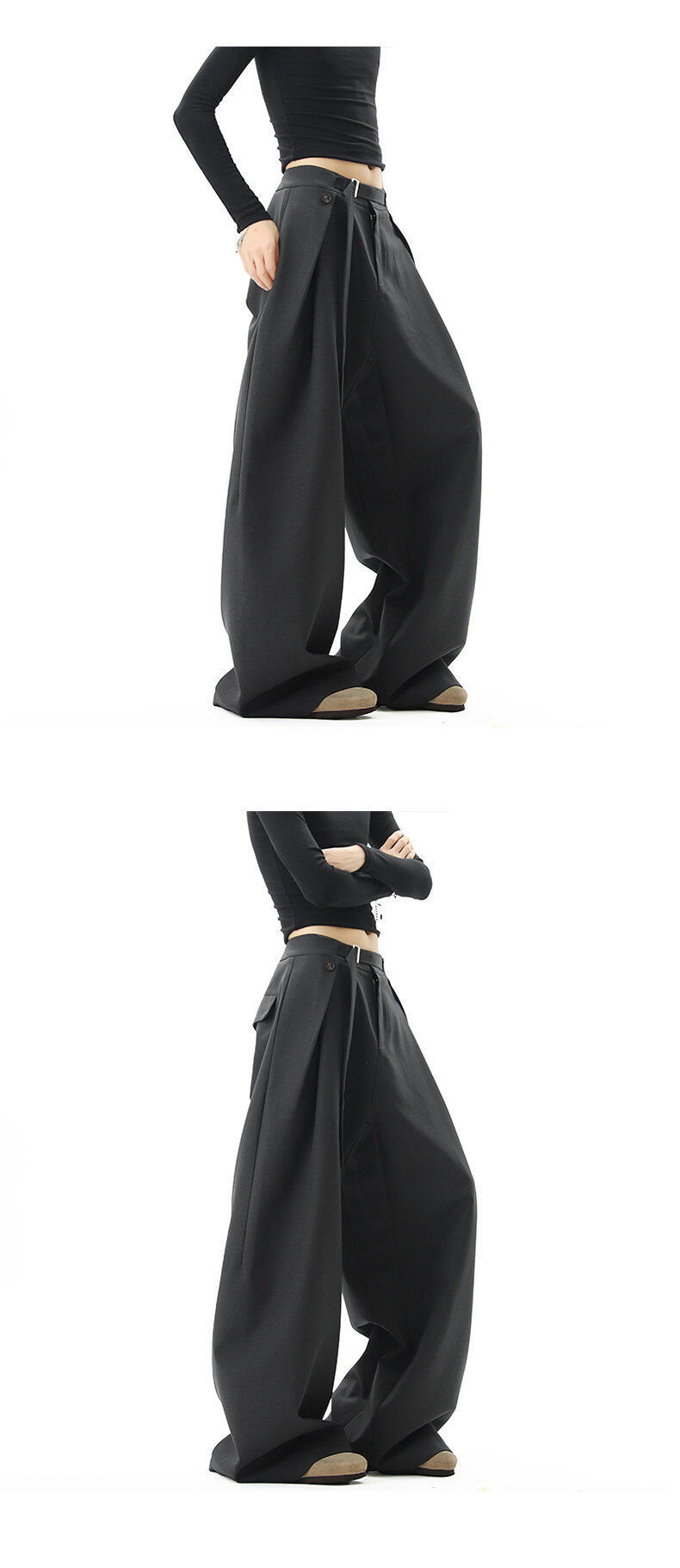 Pantalones casuales holgados drapeados de pierna ancha estilo vintage versátiles adelgazantes