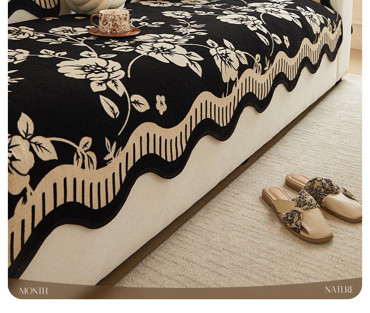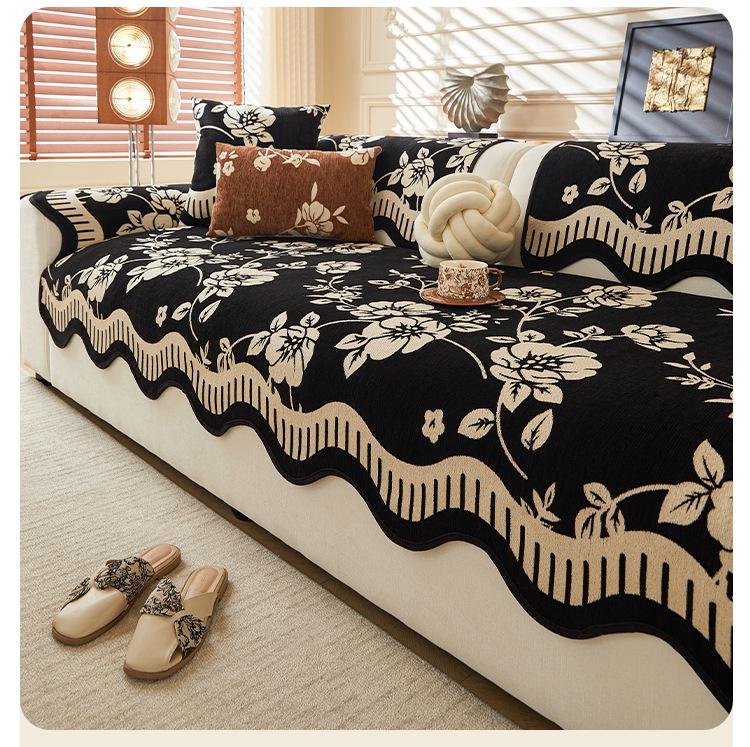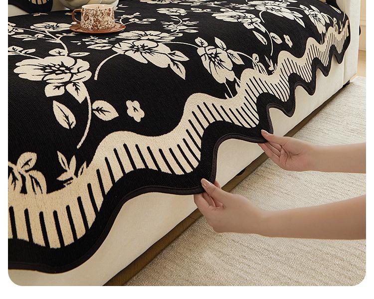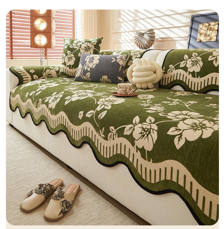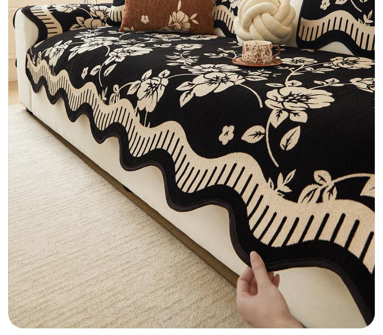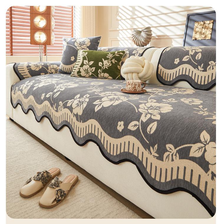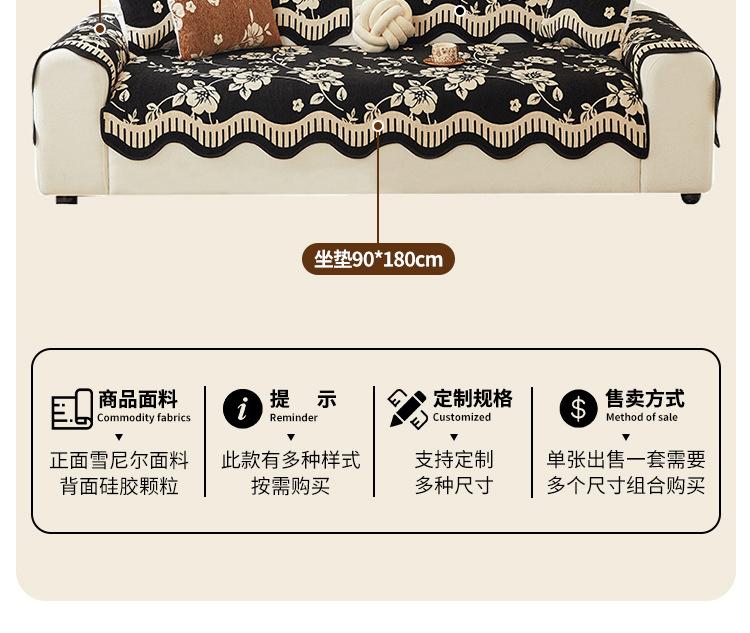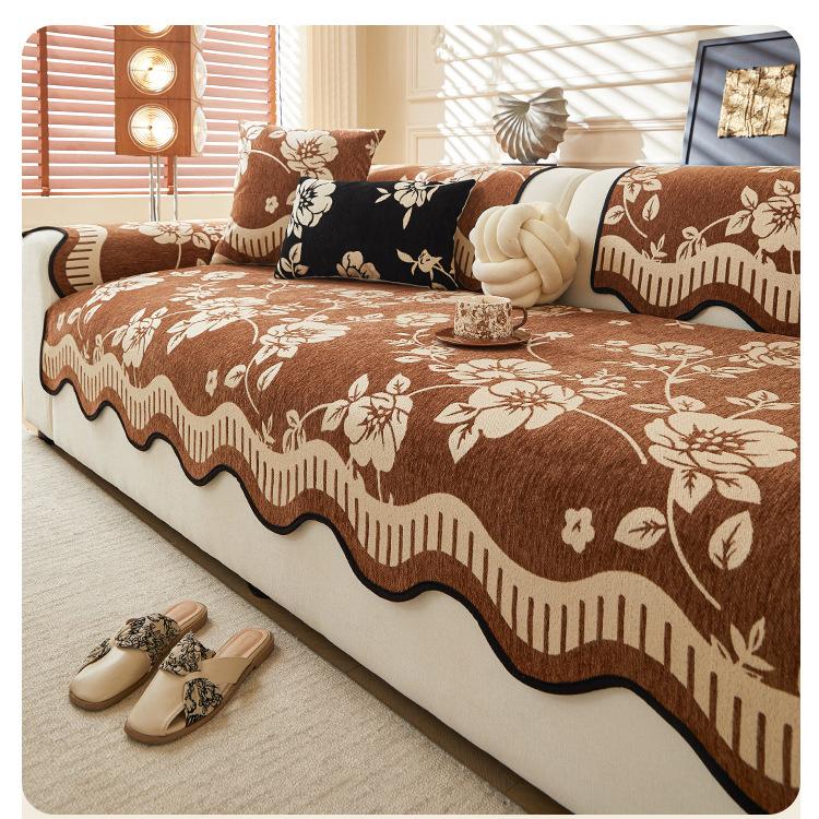 Cojín de Sofá de Cuero Retro de Lujo Ligero 2025 Nuevo Estilo Universal para Cuatro Estaciones Chenilla Fijo Antideslizante Cojín de Asiento de Sofá de Fila Recta