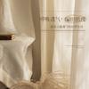 Crema viento 2023 nueva mosquitera algodón y lino a cuadros japonés cortina de gasa transparente viento log cabaña cortina para casa de huéspedes