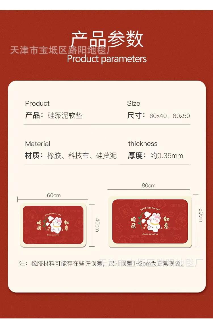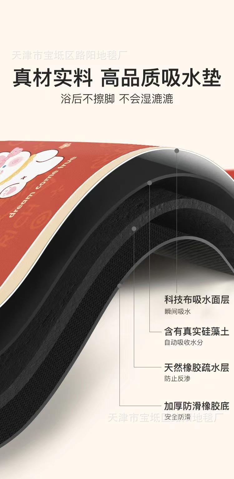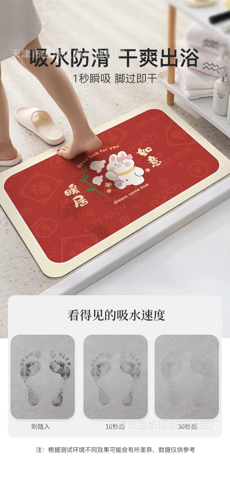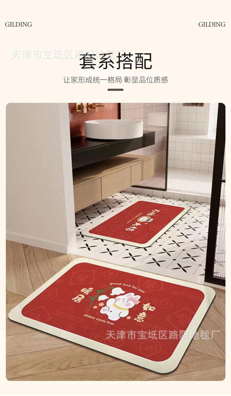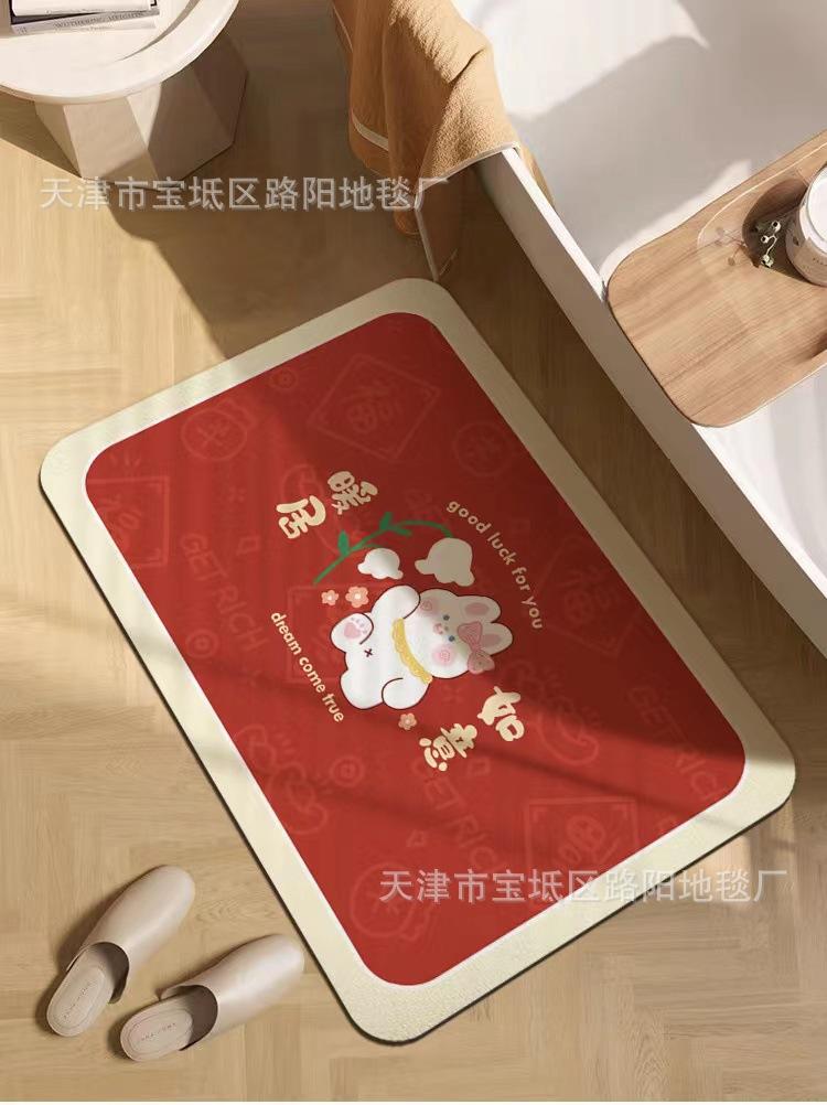 Alfombra absorbente de suelo suave de barro de diatomeas baño baño cocina puerta de entrada de secado rápido antideslizante alfombra para puerta de inodoro Año Nuevo caricatura