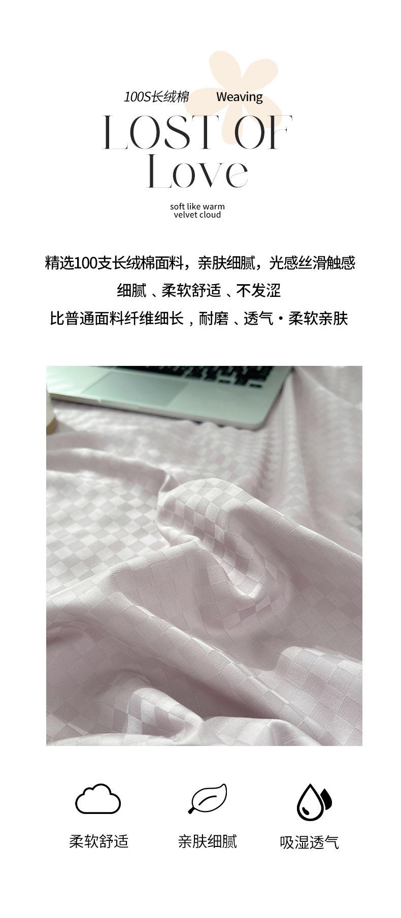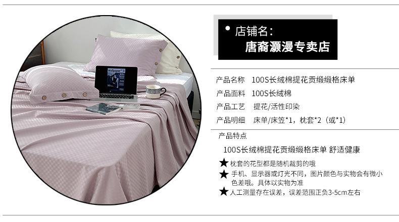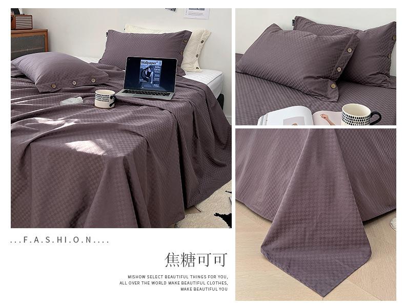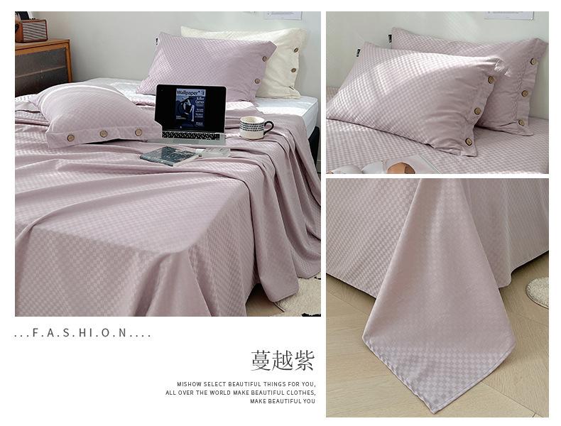 Algodón de fibra larga 100S Algodón puro Sábana de cama de una pieza Sábana ajustable 100 Satén Funda de edredón Morado Funda de almohada individual Juego de tres piezas