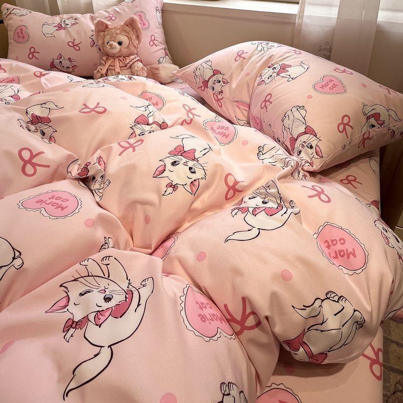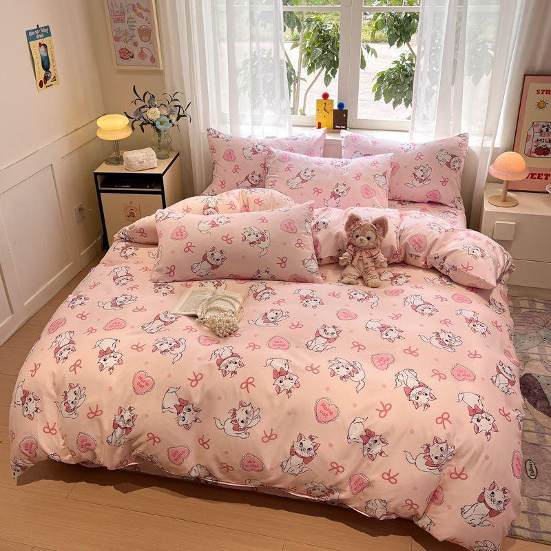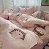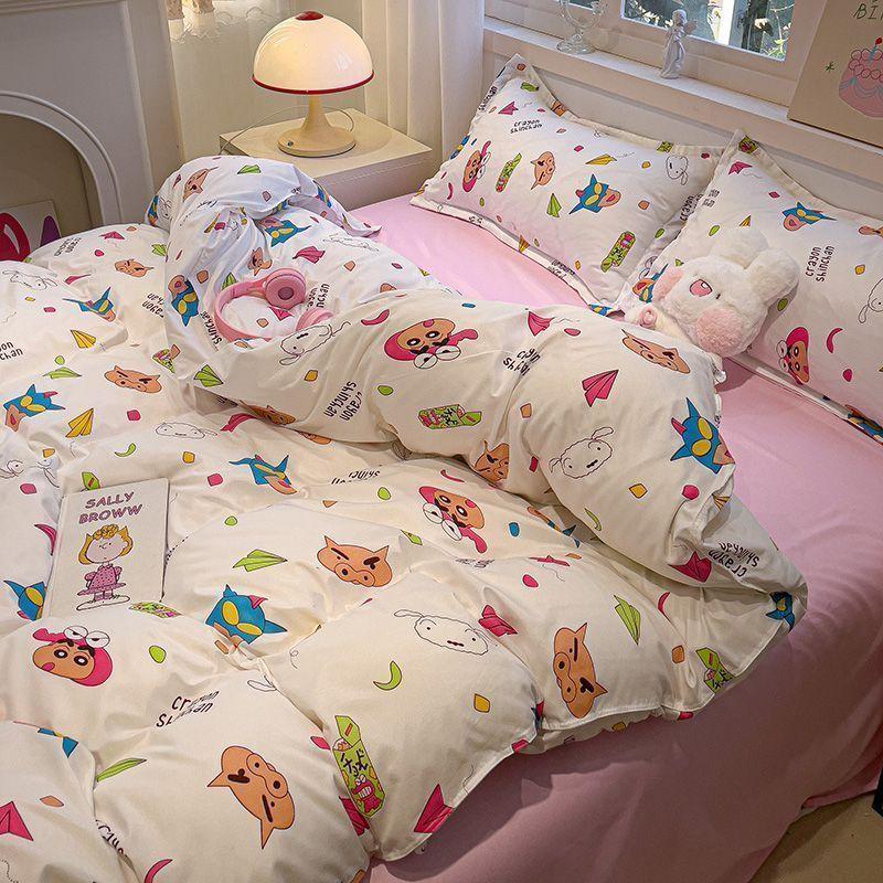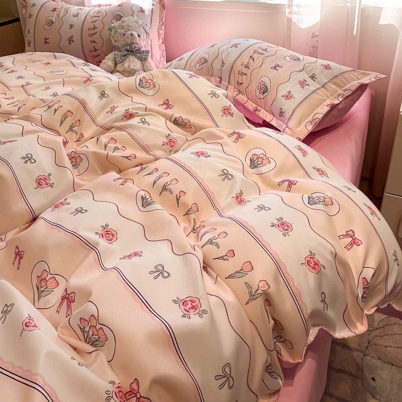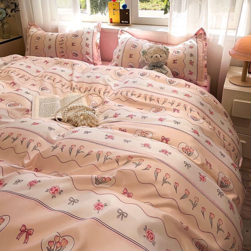 Ins Tulip Juego de cuatro piezas de funda nórdica y sábana para apartamento de estudiantes Viento dulce Algodón lavado Hermoso Juego de tres piezas para estudiantes de nuevo ingreso