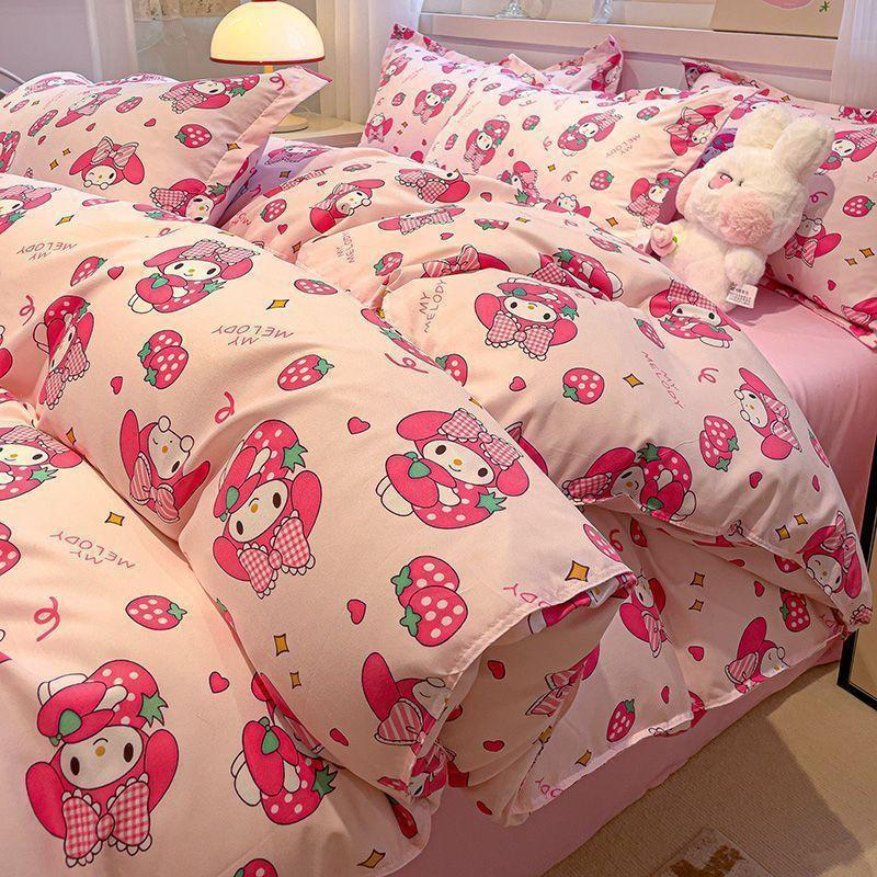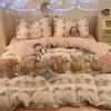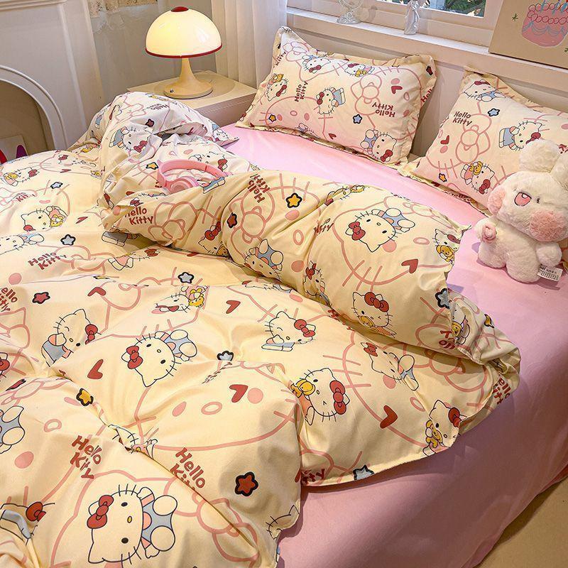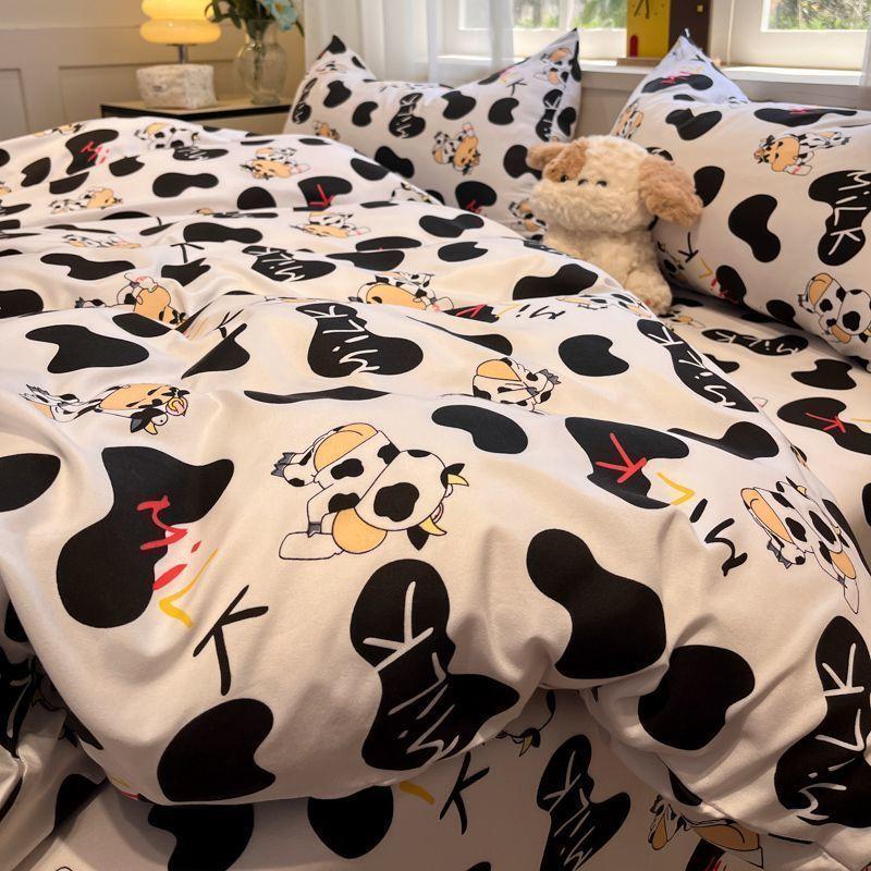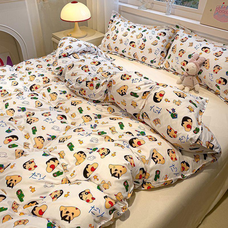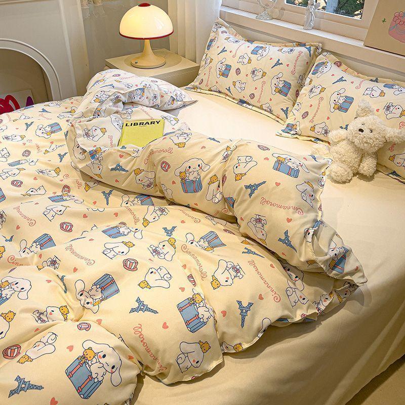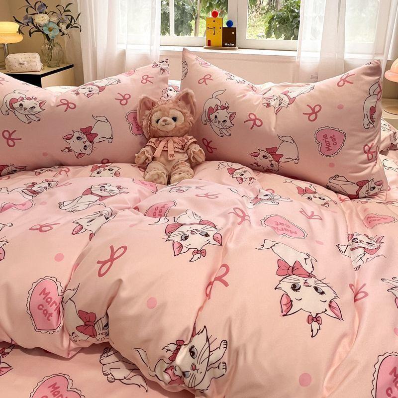 Ins Tulip Juego de cuatro piezas de funda nórdica y sábana para apartamento de estudiantes Viento dulce Algodón lavado Hermoso Juego de tres piezas para estudiantes de nuevo ingreso