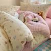 Juego de cuatro piezas de cama estilo ins 100% algodón puro algodón sábana funda de edredón juego de tres piezas para dormitorio de estudiante sombrero de ropa de cama floral pequeña