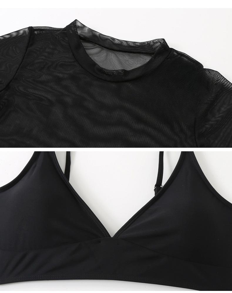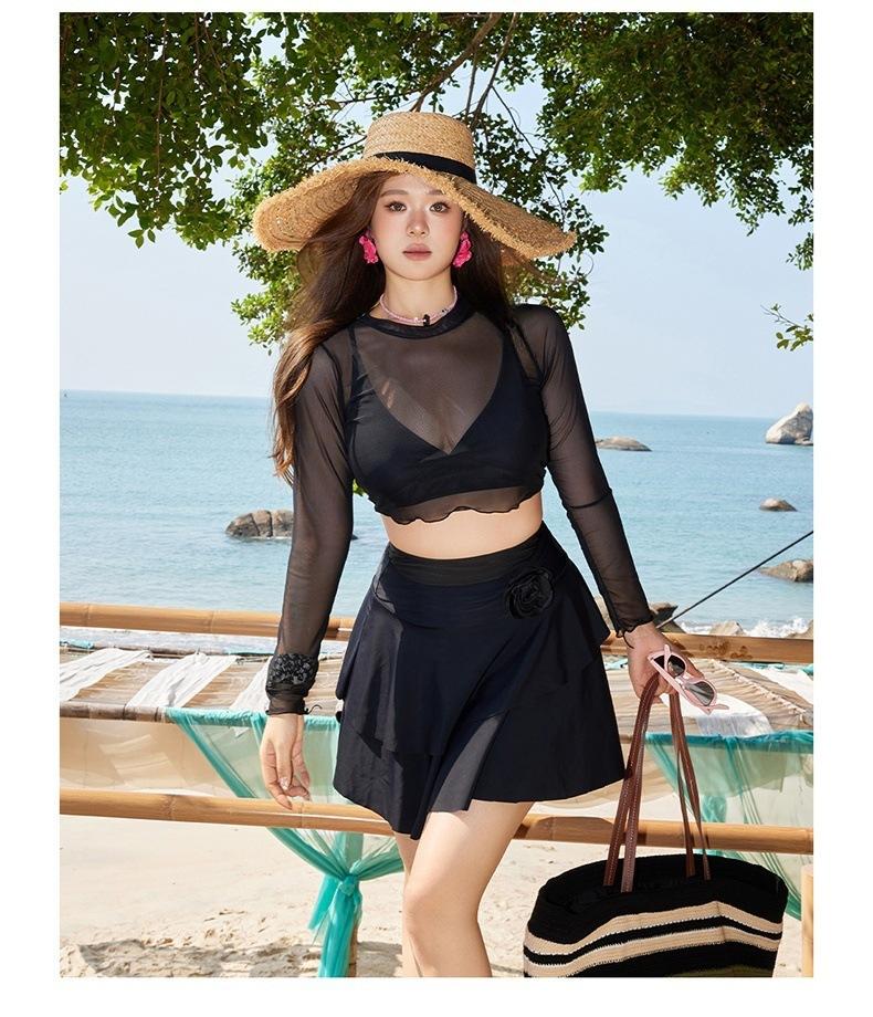 Traje de Baño Coreano de Cuatro Piezas con Abertura para Mujer de Talla Grande 100 kg Estilo Lujurioso Puro Sexy Vacaciones Playa Aspecto Adelgazante Gordo mm Traje de Baño