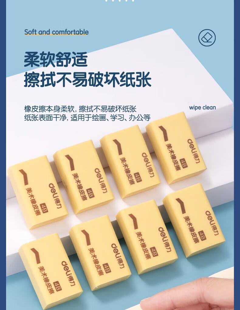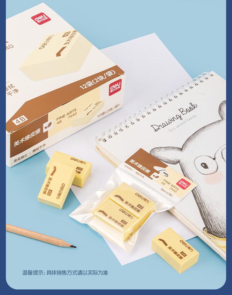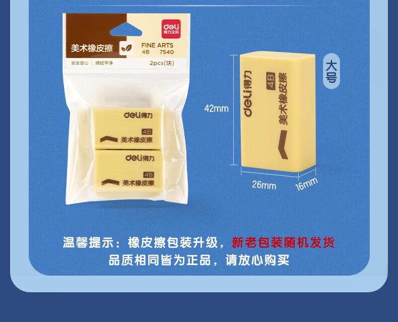 Borrador Deli 4B para Arte 7540 Empaquetado Individualmente Borrador para Lápiz 2 Piezas/Bolsa Borrador de Papelería para Pintura de Estudiante Venta al por Mayor