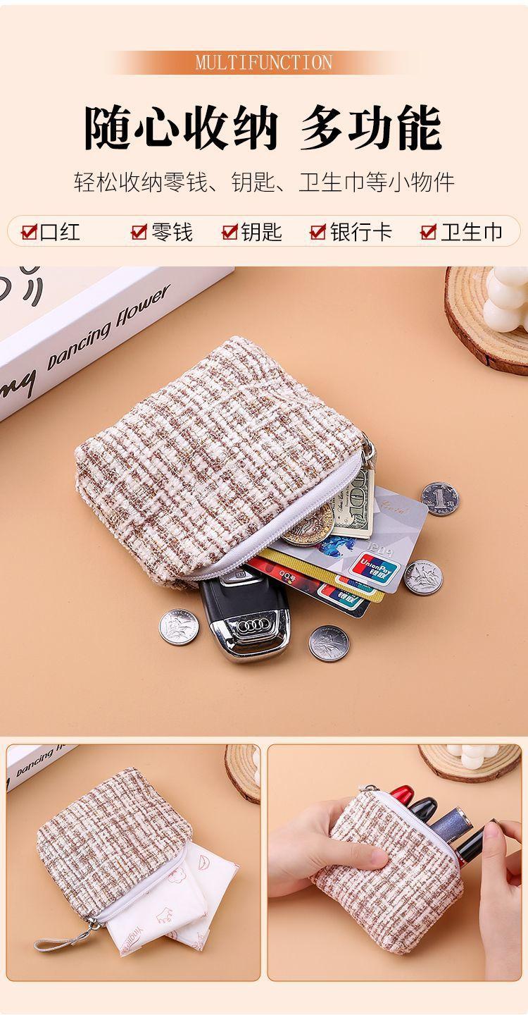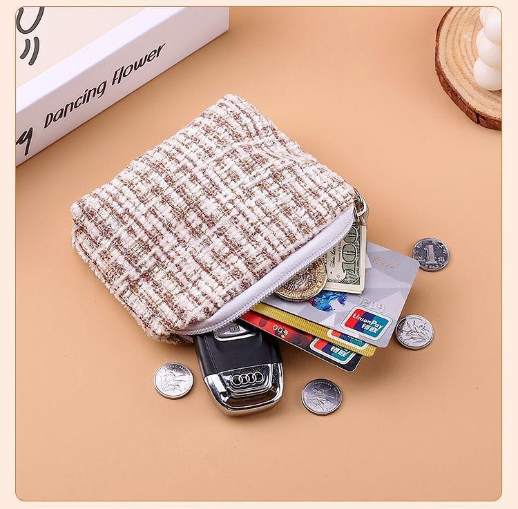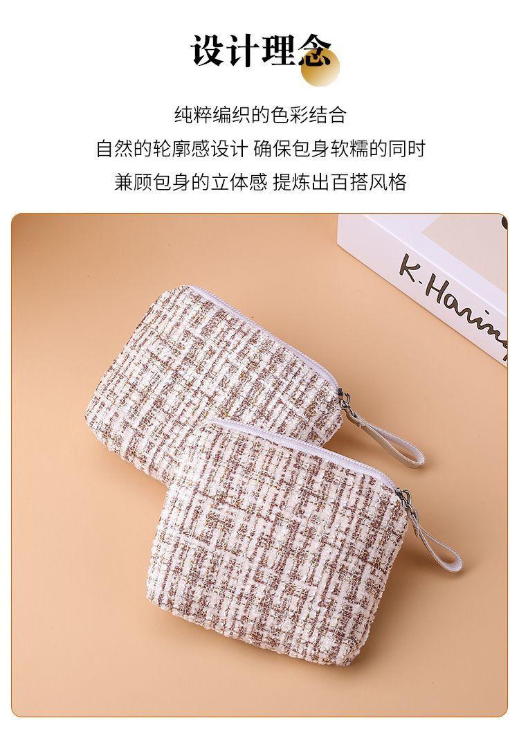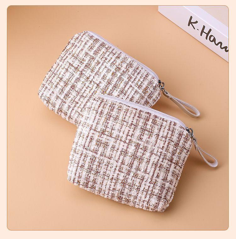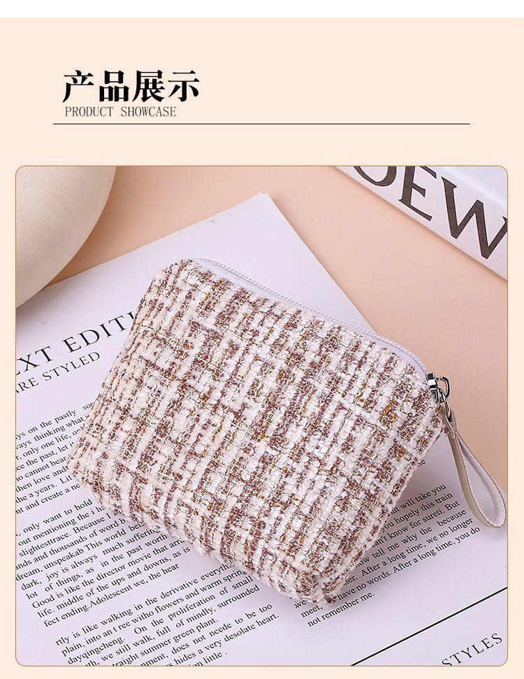 Bolsita para audífonos estilo Chanel, mini monedero, lápiz labial para mujer, llaves, artículos pequeños, bolsa de almacenamiento de lona