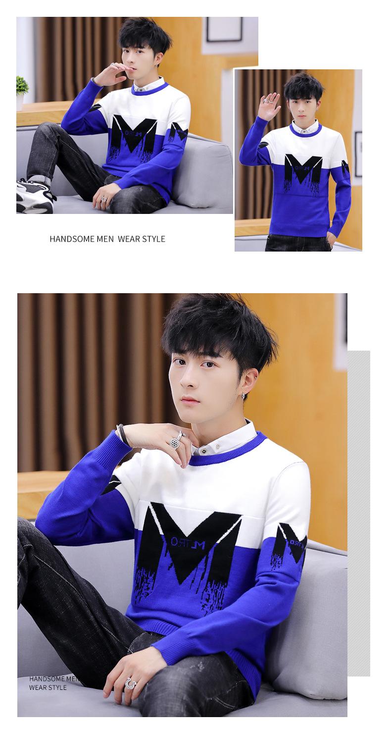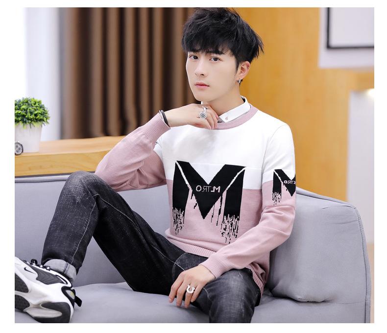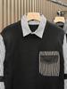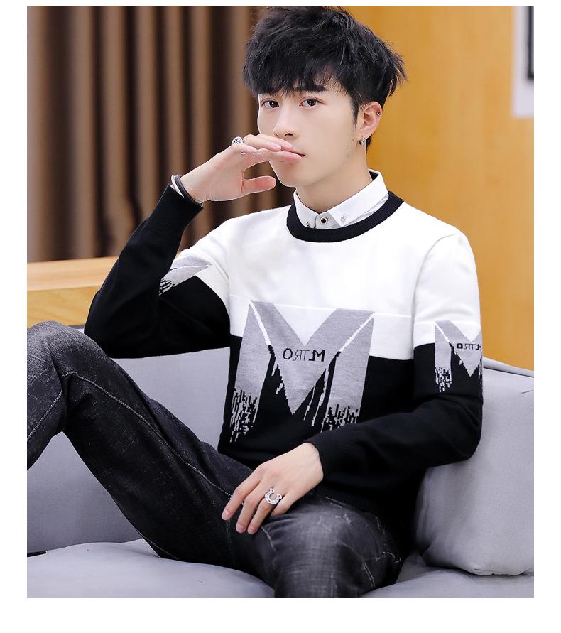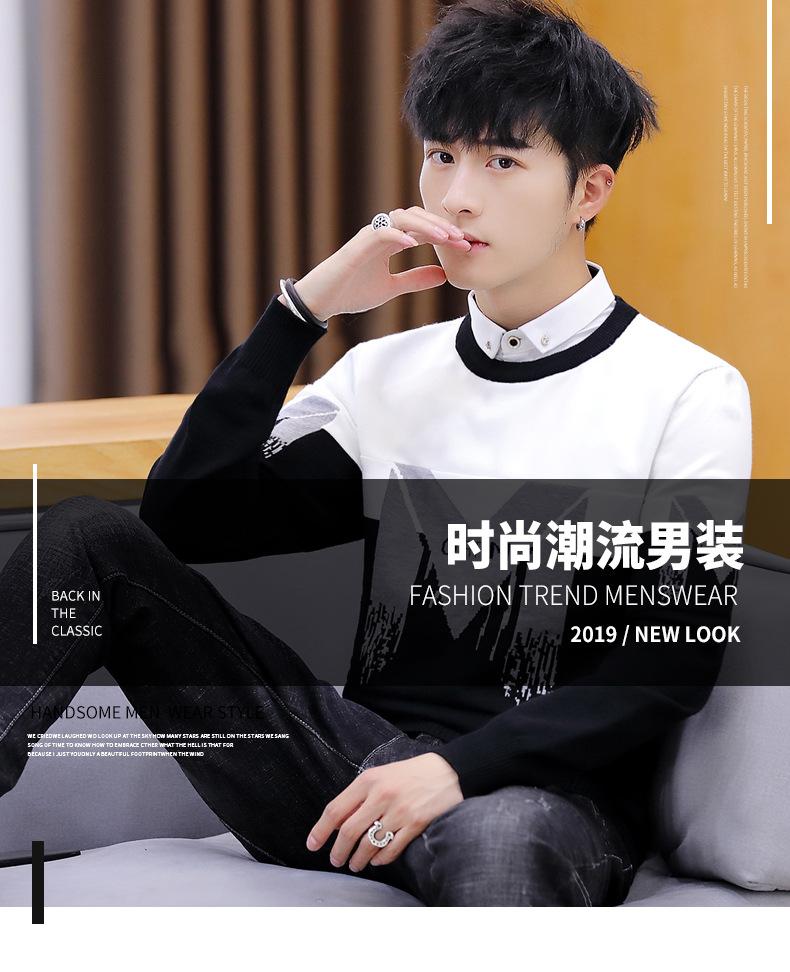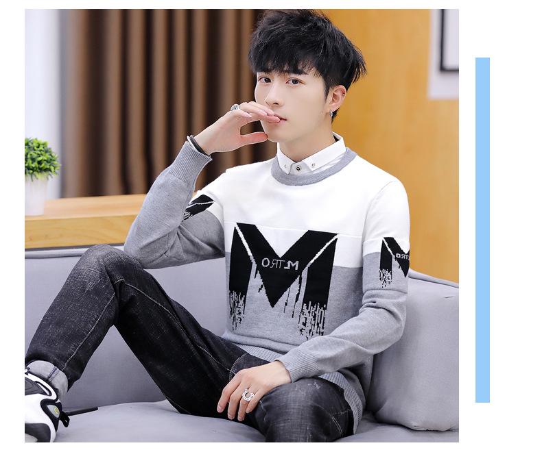 Suéter de cuello redondo de una pieza para hombre estilo coreano 2019 nuevo falso de dos piezas camisa para llevar debajo suéter de otoño e invierno tejido