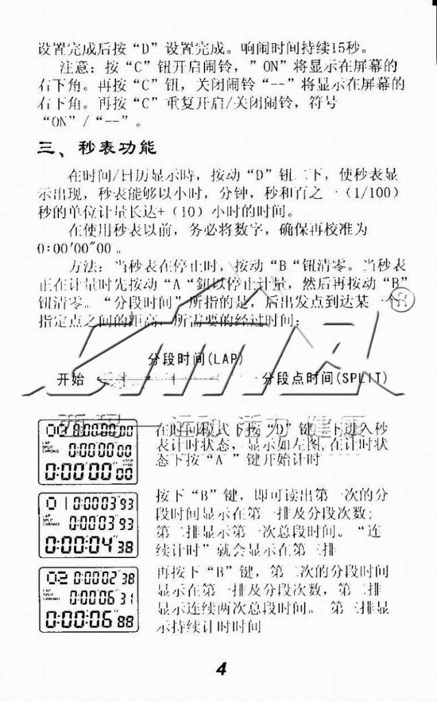 4.Después de iniciar el cronómetro, no lo lleve alrededor del cuello ni lo guarde en el bolsillo mientras corre para evitar que los botones del cronómetro choquen con su cuerpo durante la carrera, causando paradas o inicios accidentales.
