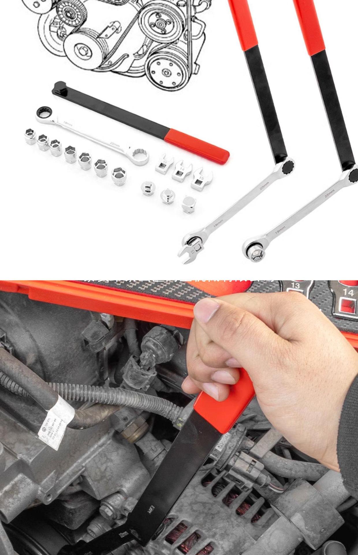 Automobile idler pulley adjustment wrench extension rod adjustable inert tensioner disassembly and assembly special