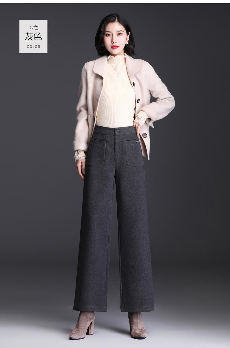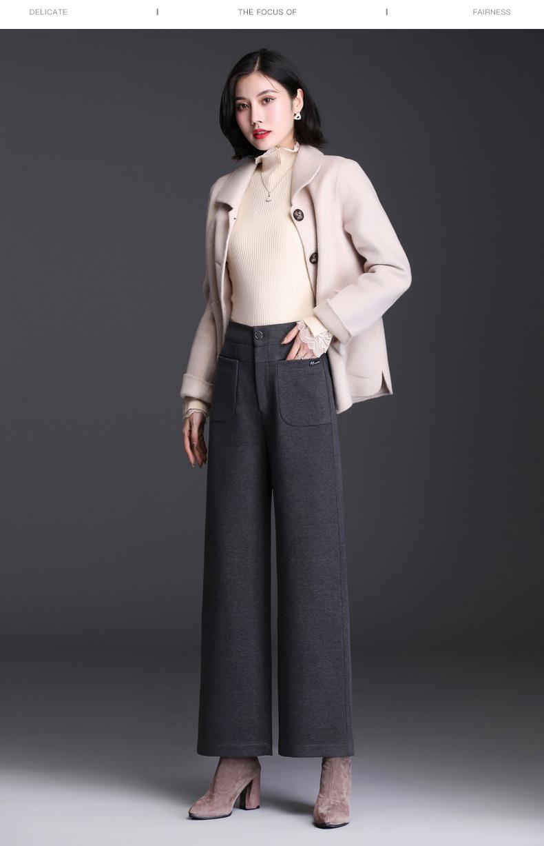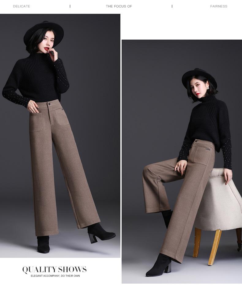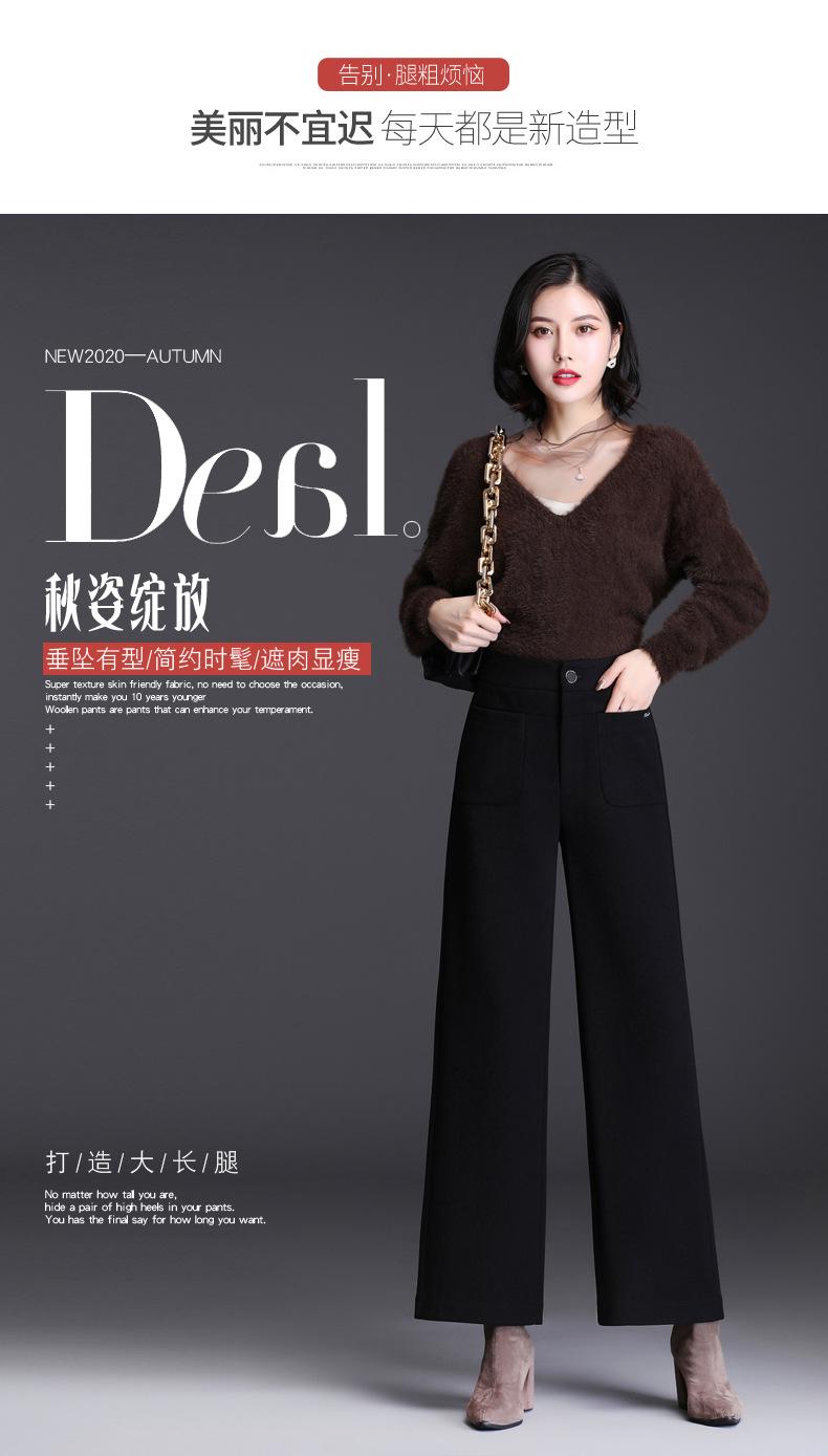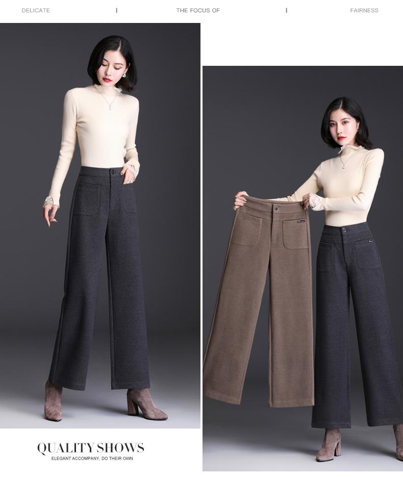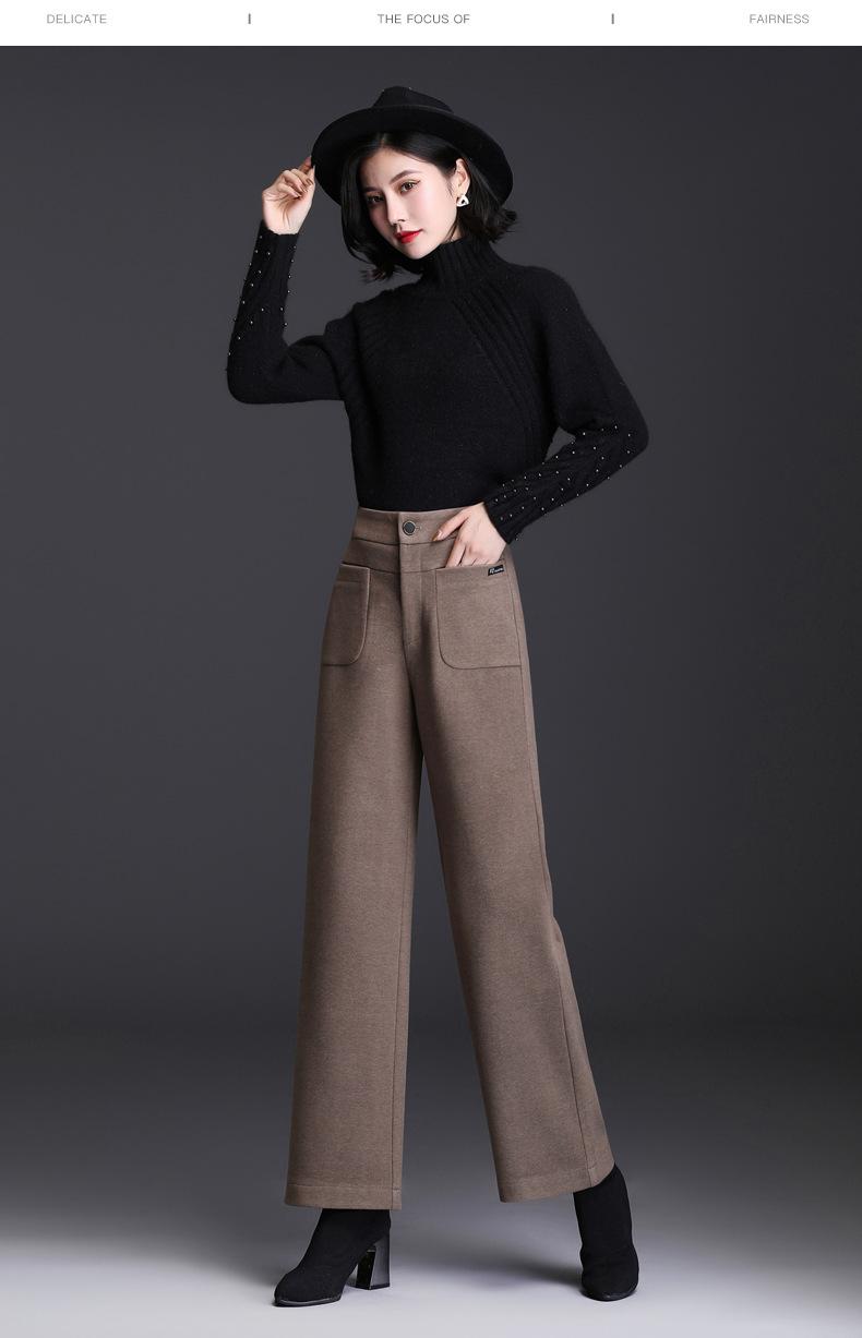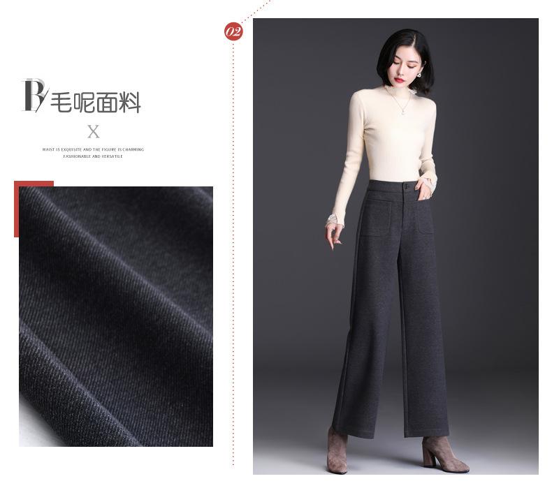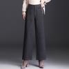 Pantalones de pierna ancha para mujer de cintura alta adelgazantes rectos holgados para combinar con todo traje drapeado pantalones casuales de lana para primavera y otoño 2020