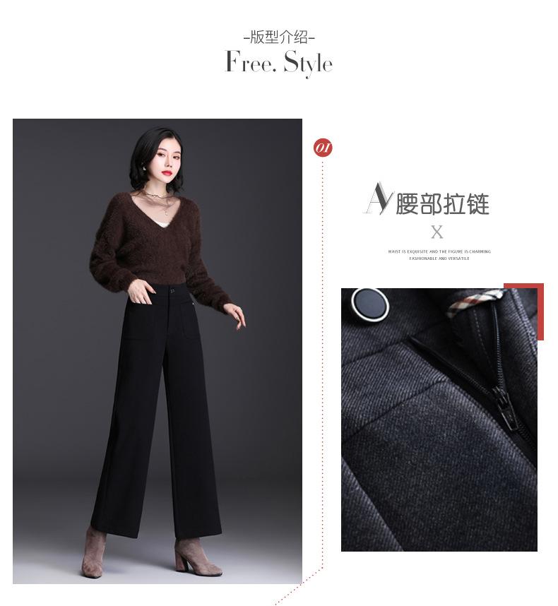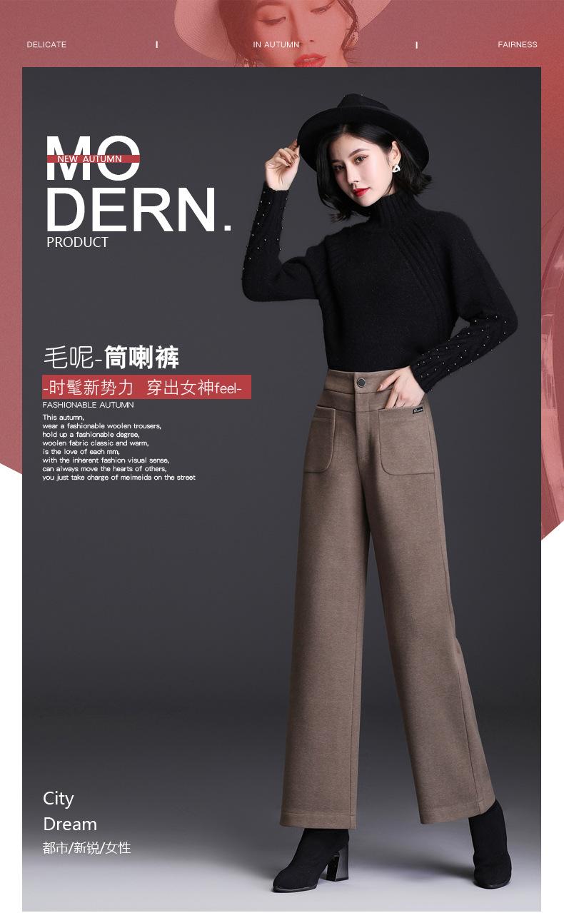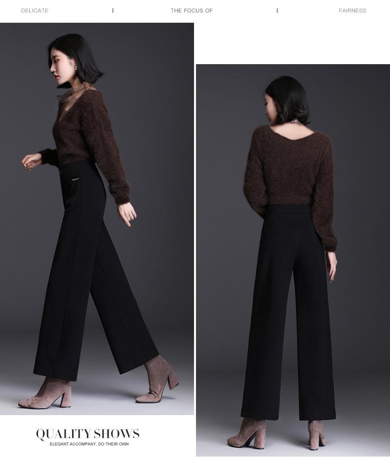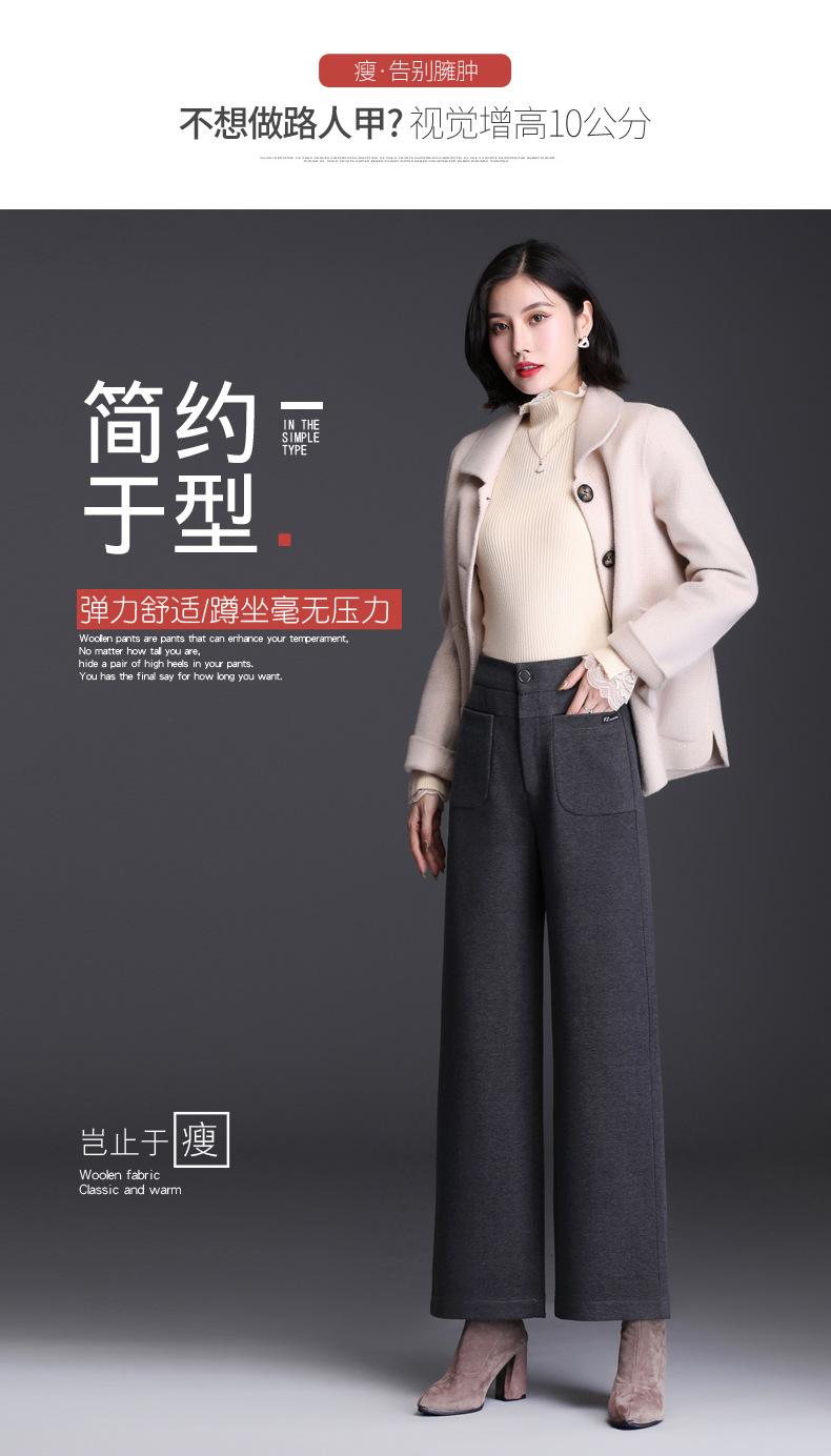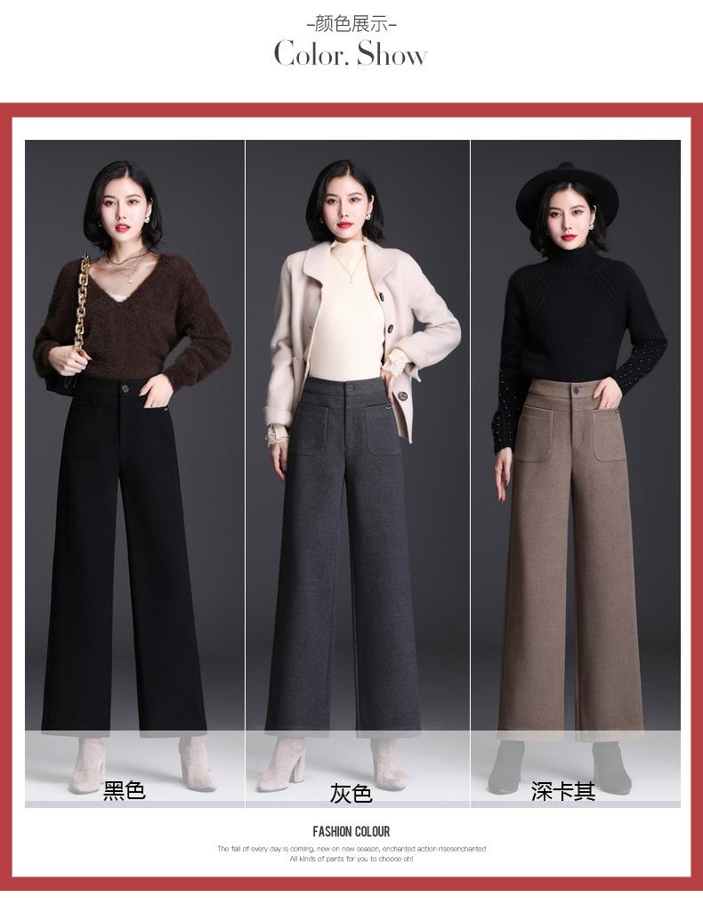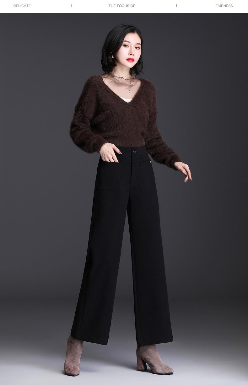Pantalones de pierna ancha para mujer de cintura alta adelgazantes rectos holgados para combinar con todo traje drapeado pantalones casuales de lana para primavera y otoño 2020