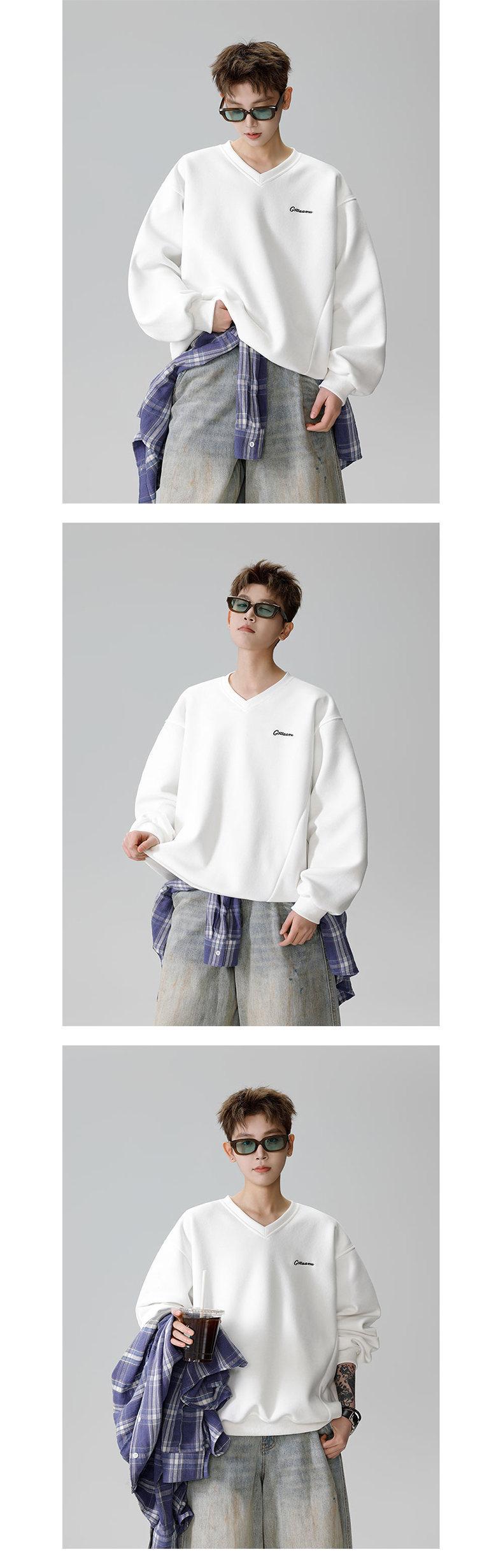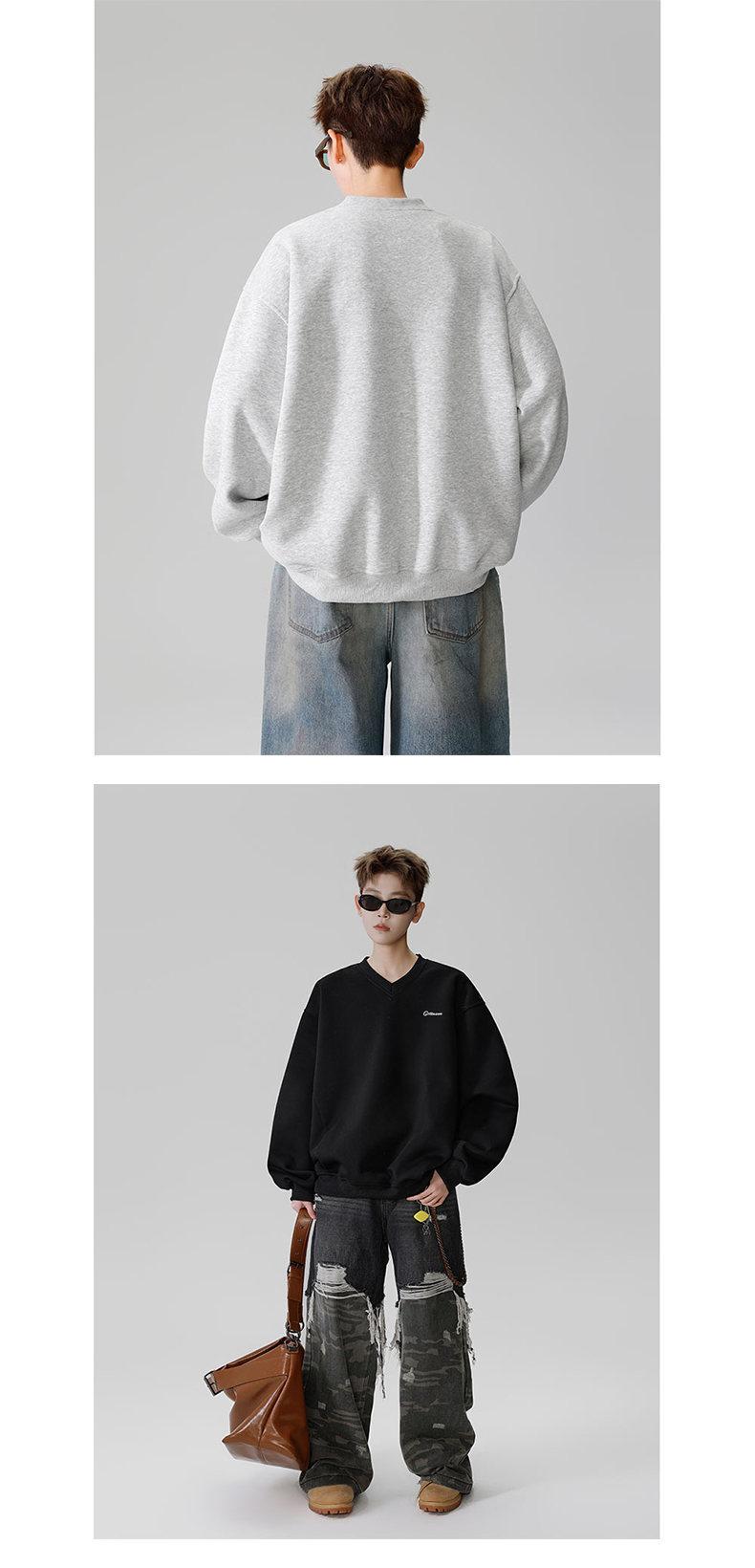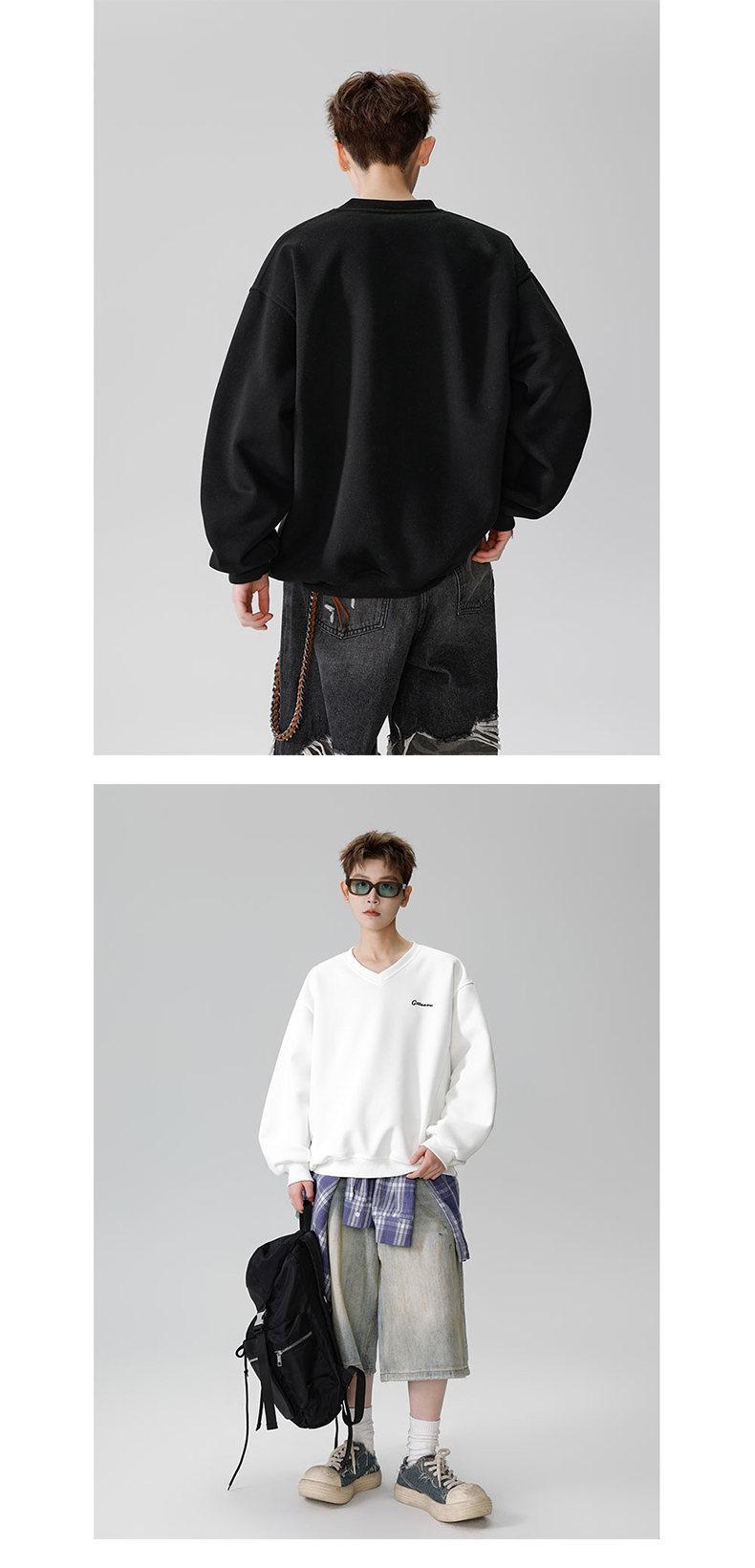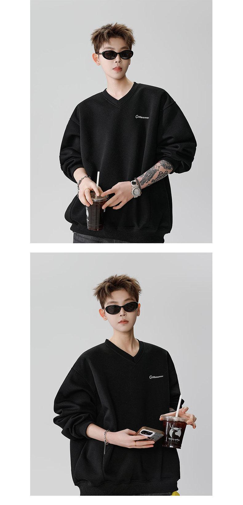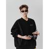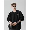 Sudadera de Punto con Bordado para Hombre Otoño 2025 Cuello en V Jersey Holgado Talla Grande Casual Simple Ropa Exterior