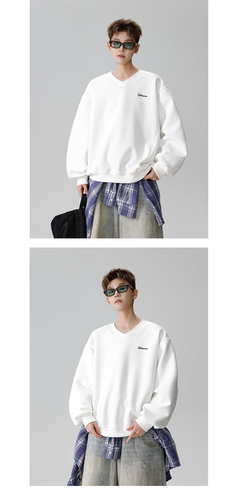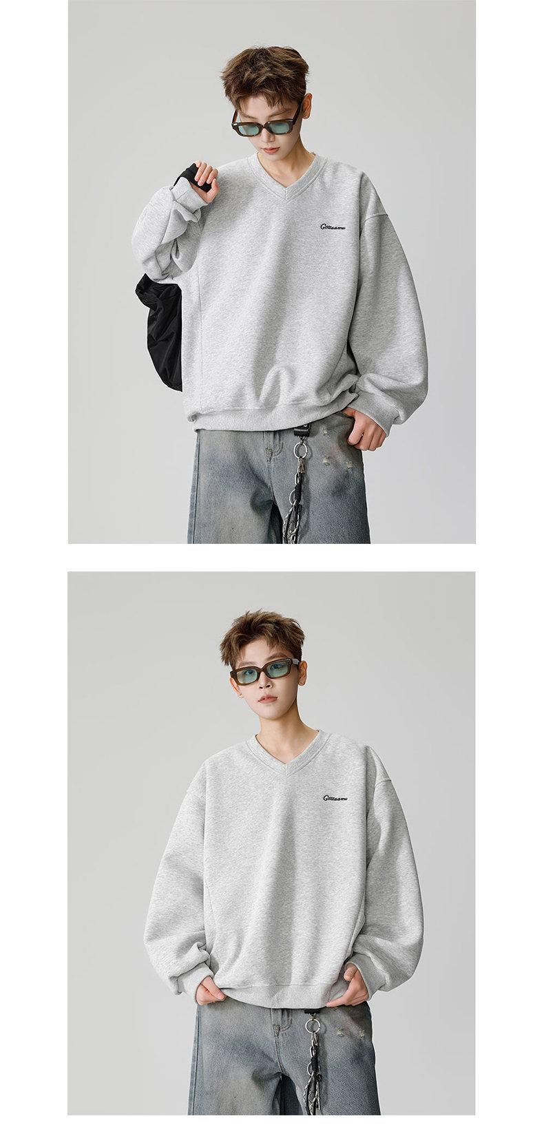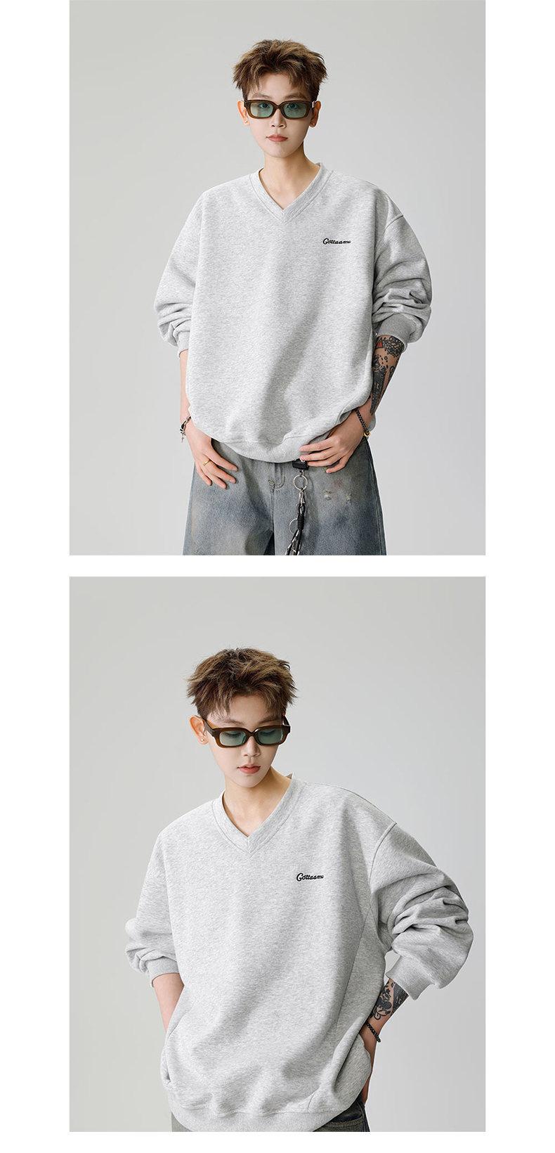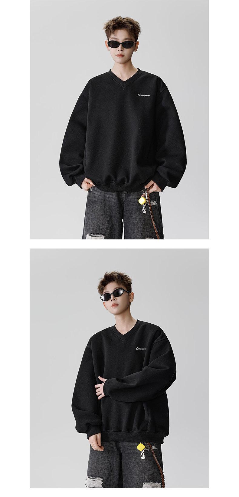 Sudadera de Punto con Bordado para Hombre Otoño 2025 Cuello en V Jersey Holgado Talla Grande Casual Simple Ropa Exterior