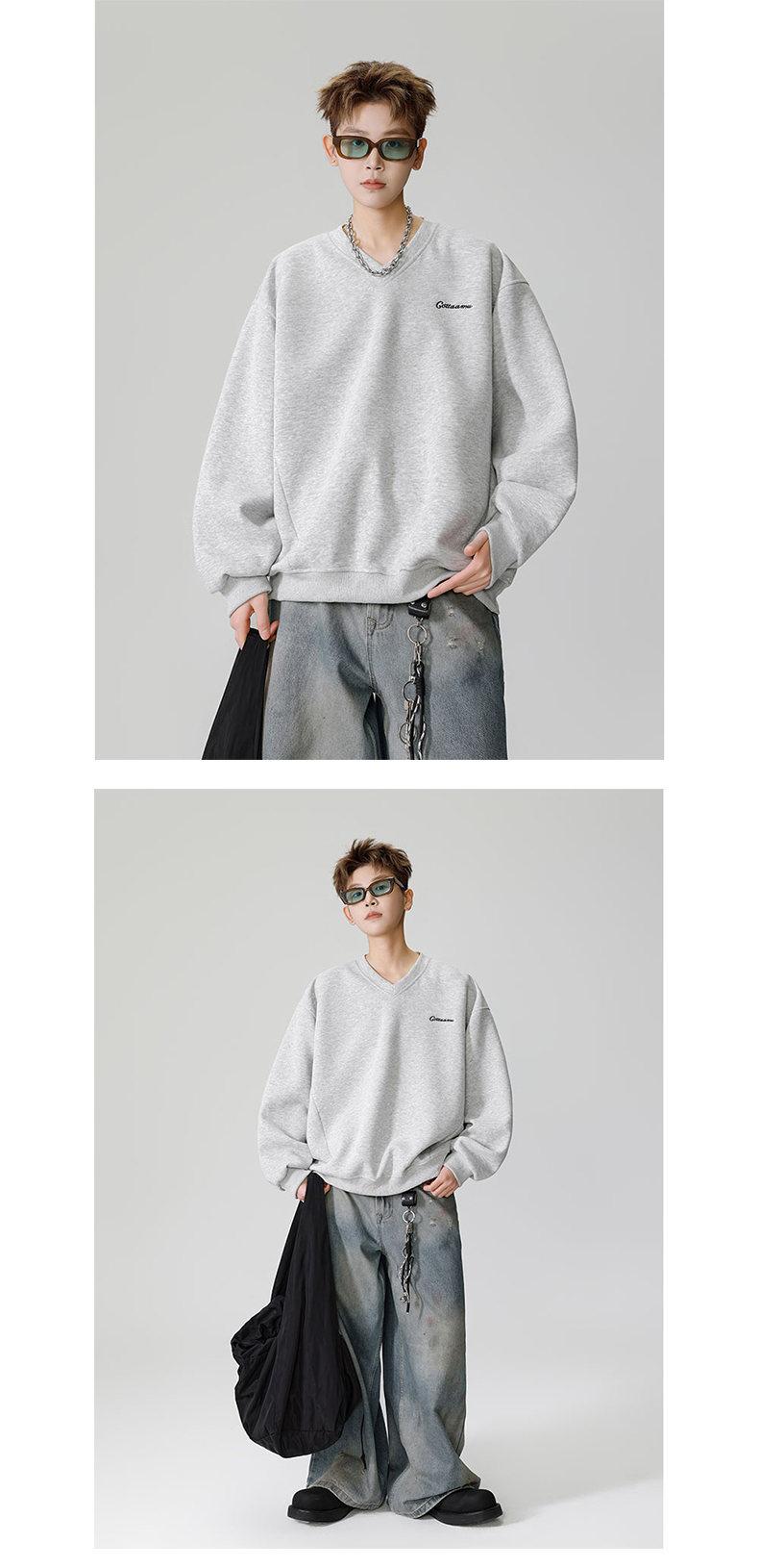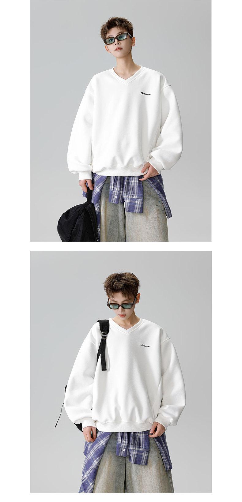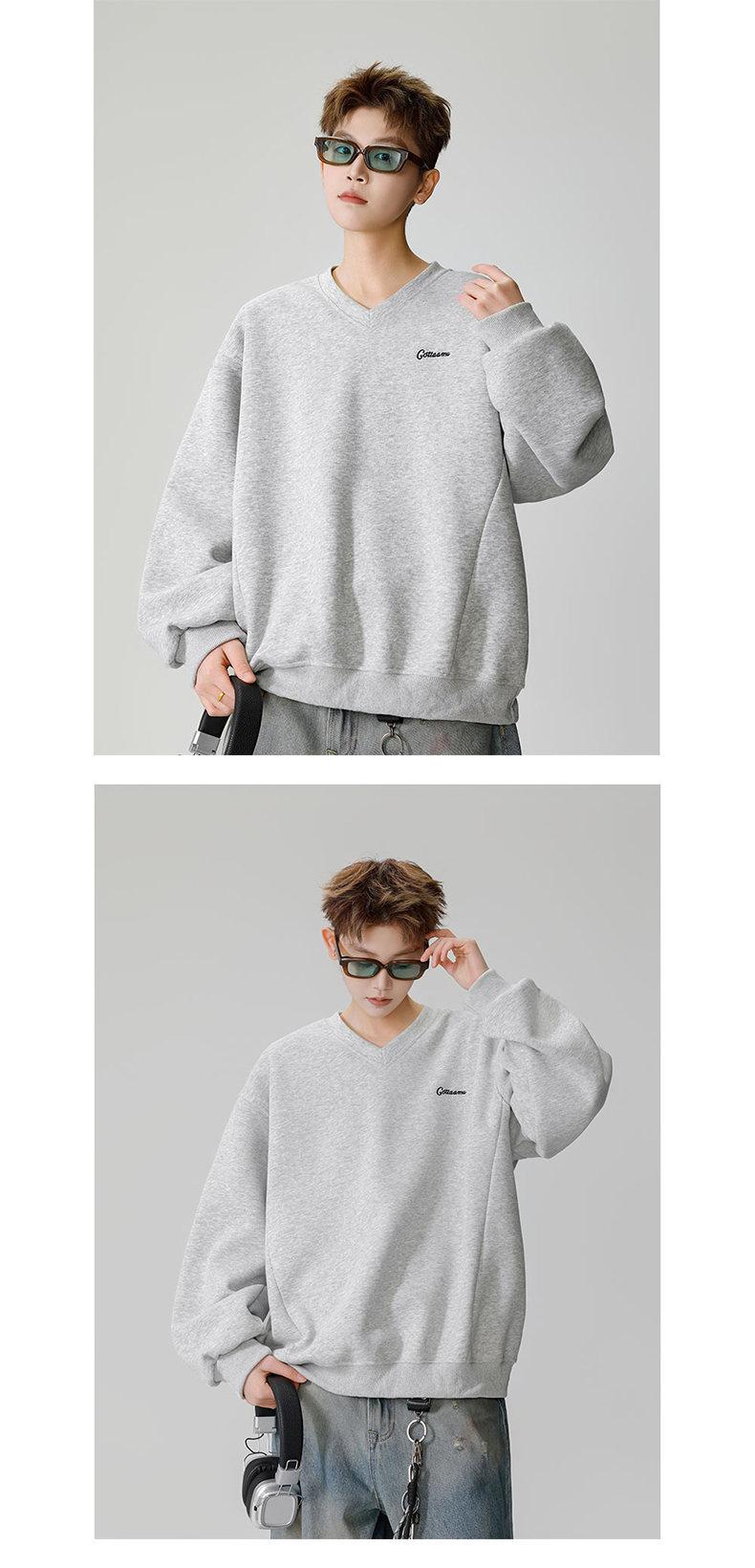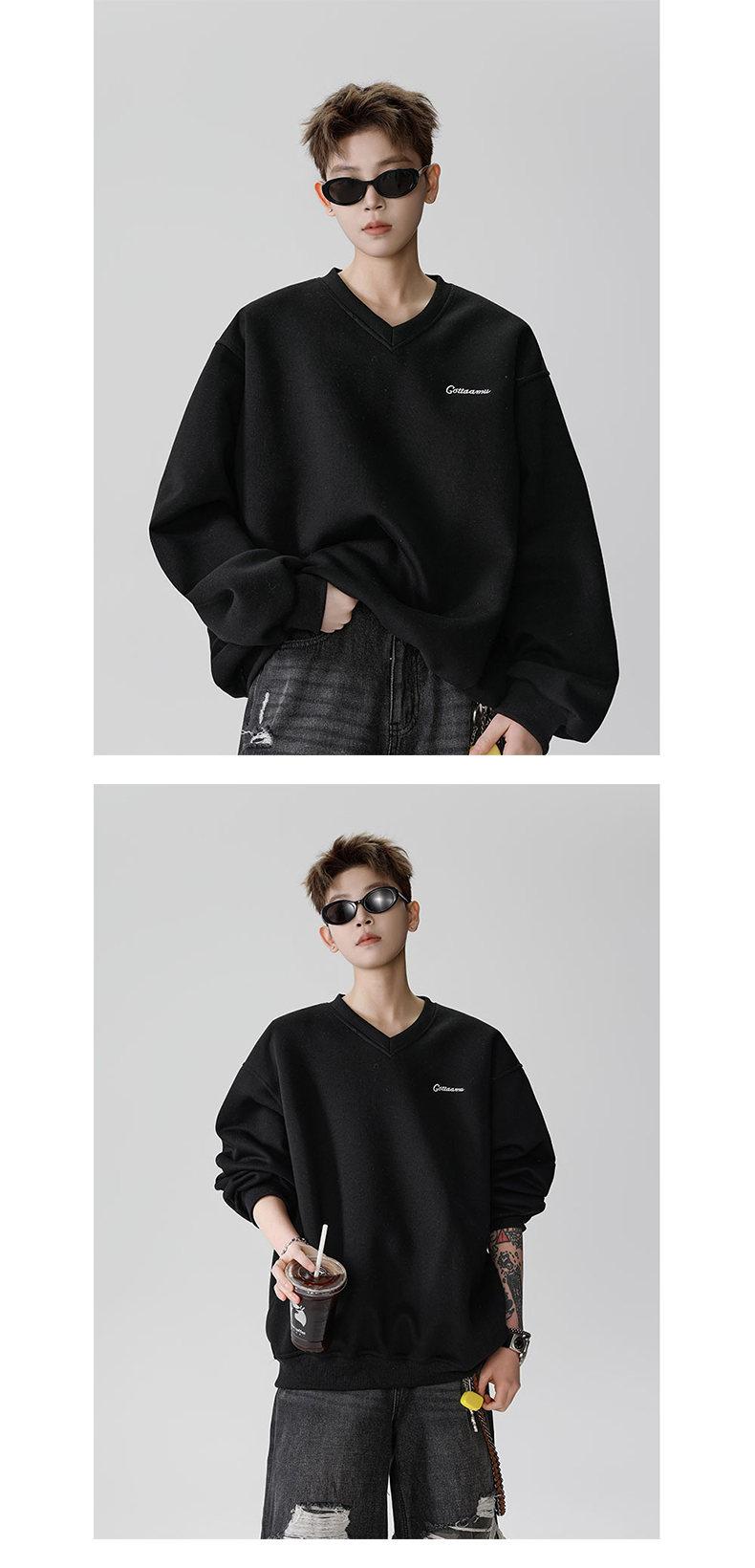 Sudadera de Punto con Bordado para Hombre Otoño 2025 Cuello en V Jersey Holgado Talla Grande Casual Simple Ropa Exterior