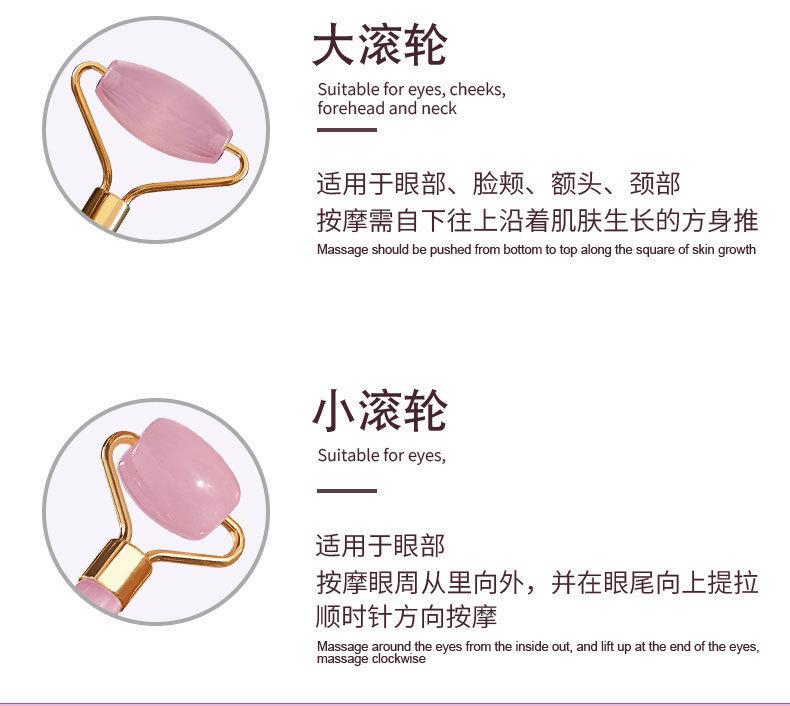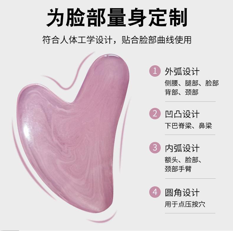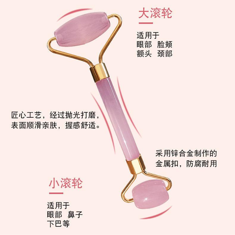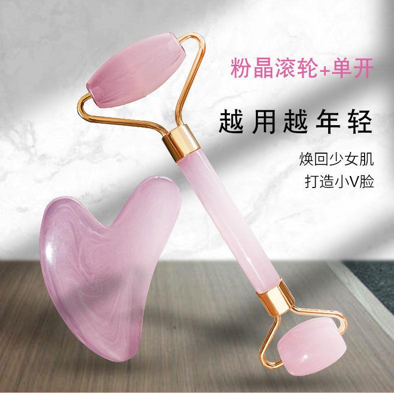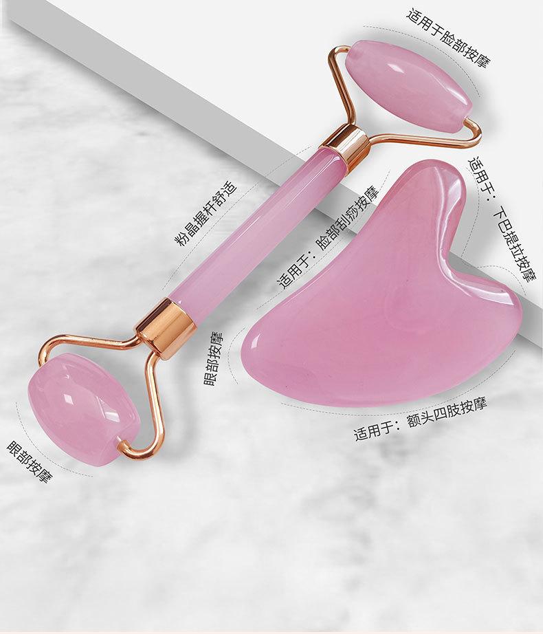 Tabla de Raspado Facial Jade Cristal Rosa Rodillo Masajeador de Doble Cabezal Actividad de Masaje V Lifting Facial y Flacidez